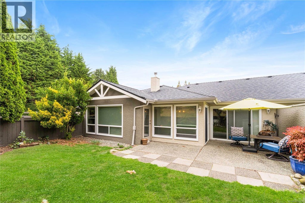 Discover easy living in this bright and spacious 1,685 sq ft patio home backing onto Glen Eagle Park—just minutes from Fairwinds Golf Course, the marina, rec centre, and trails. With 2 bedrooms, 2 bathrooms, and a den, this well-designed home offers a fully fenced yard and two private patios for year-round enjoyment. Vaulted ceilings and southwest-facing windows fill the living/dining area with natural light, while the cozy gas fireplace adds warmth. The kitchen features quartz counters, white cabinetry, tile backsplash, new appliances, and a sunny nook with patio access. Retreat to the primary suite with walk-in closet and a 5-pc ensuite. A skylit den and guest room with private courtyard access add flexibility. Upgrades include quartz counters, concrete sinks, motorized blinds, new carpets, lighting, washer/dryer, and more. Hot water tank (2021). Strata: $436.53/month. Contact the listing agent, Kirk Walper, at 250-228-4275 for more information. (id:6289)