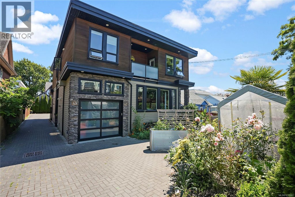 AMAZING JAMES BAY BY THE OCEAN! This modern-designed 4 Bed/4 Bath home is just steps to the ocean, and is located in one of Victoria’s premier neighbourhoods! Live the Victoria lifestyle in this iconic location—walk to Dallas Rd, Ogden Point. parks or downtown! This 2000 sq ft+ front duplex offers modern West Coast living across 3 levels. Designed by an award-winning builder, it features open-concept living rm w/cozy gas F/P, radiant in-floor heat, hardwood floors, quartz counters, on-demand hot water, and stainless steel appls. The top-floor primary suite includes a spa-inspired ensuite and a private balcony. Bonus: lower level, great for teens or theatre rm and guest rm. A great option for an in-law suite or extended family. Garage/workshop for all your storage needs and beautifully landscaped gardens. Close to downtown, Beacon Hill Park, coffee shops, restaurants, and much more. Great value here! One of Victoria's most desirable communities to live in. (id:6289)