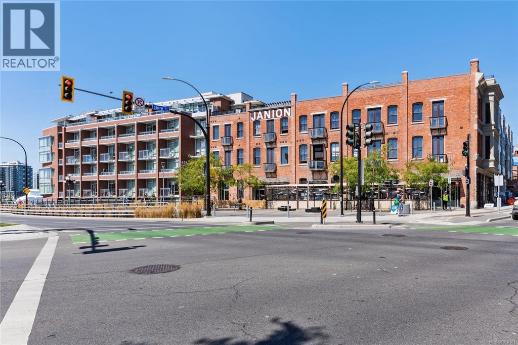 Ocean views! Located in Victoria's popular Old Town, The Janion is an architectural and historical standout. This steel and concrete development offers amazing amenities like a rooftop terrace with BBQ's and stunning harbour views, kayak storage with direct water access, a well equipped gym, and amenity room with kitchen. Step inside unit 211, and be delighted by natural light from south facing floor to ceiling windows, which offer picturesque ocean views. It is also equipped with a full kitchen including drawer dishwasher, murphy bed with dining table, 9' ceilings, in-suite laundry, blackout blinds, brand new engineered wood floors, and private balcony overlooking the water. This loft also comes with a storage locker! Perfect for simplified full time living, or investment (rental friendly and in high demand). Just steps to Victoria's best dining, coffee and retail, the urban lifestyle is waiting for you! Ran by a very professional strata. (id:6289)