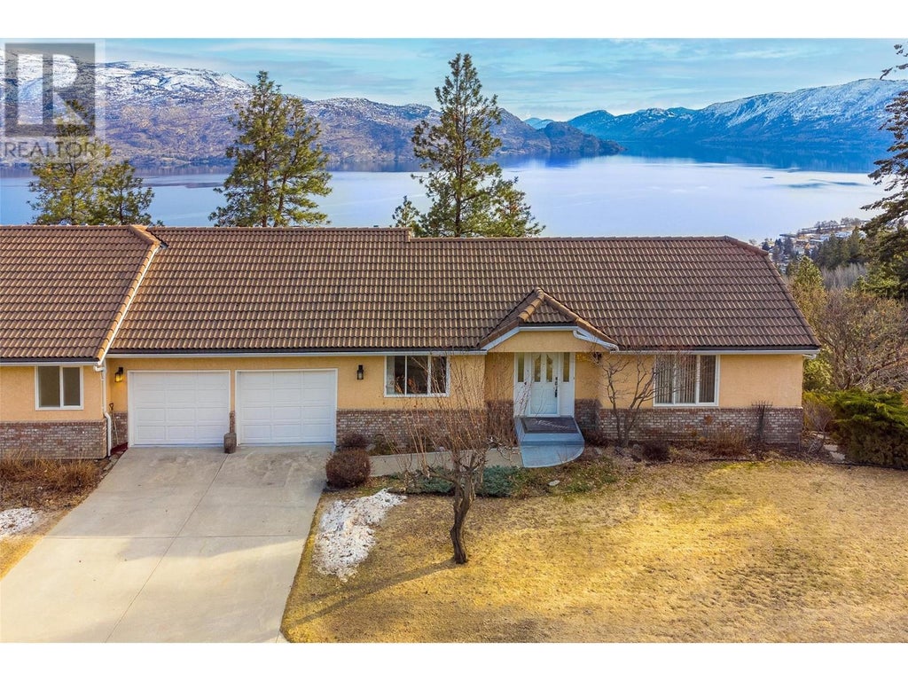 Location, Location, Location!!! Unique opportunity to own your piece of paradise. Captivating, jaw dropping lake, mountain and valley views to be enjoyed from both levels - stunning! Level entry Rancher with a fully finished walkout basement! One of the largest homes in this always sought after development. Spacious double garage, main floor master plus second bedroom/den with 2 bedrooms, family room and full bath down plus there is a wet bar that is so handy when entertaining family and friends. Your monthly strata fee includes your in floor heating and hot water, which is such a bonus! Large covered deck with a gas barbeque hook up! Pet friendly development which allows one cat or one dog, no age restrictions and minimum 30 day rentals are allowed. This home has been lovingly cared for, so the bones are great - bring your new ideas and make it your own. (id:6289)