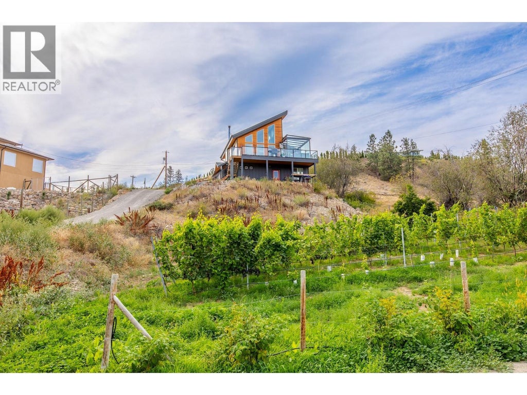 Come take a look at this delightful offering - gorgeous lake and valley views, 2.47 acre property with a newly built contemporary home and detached guest house! The main house has modern touches throughout with an incredibly swank sun room that offers approximately 220 sq. ft. of year round living, bringing the outdoors in, with its sliding glass panelled walls. The living room offers a cozy top-of-the-line wood burning fireplace with floor to ceiling windows and the chef's kitchen offers vaulted ceilings and loads of light. 2 bedrooms plus a den, a loft style family room, energy efficient heat pump, in-floor radiant heat, 200 amp service and wired for solar panels and a hot tub too. Fully finished and insulated single car garage, fantastic outdoor entertainment decks to enjoy the views of the property and the surroundings. The detached guest house is complete with kitchen, bathroom and guest room space and boasts a private outdoor deck the overlooks the vineyard, lake and valley - currently operated as a fully licensed Air Bnb. Approximately 1 acre of grapes are planted on the property - for wine hobby enthusiasts - and the remaining property offers lovely outdoor space to walk your dogs or park your extra vehicles (or build a shop). This one must be seen! (id:6289)