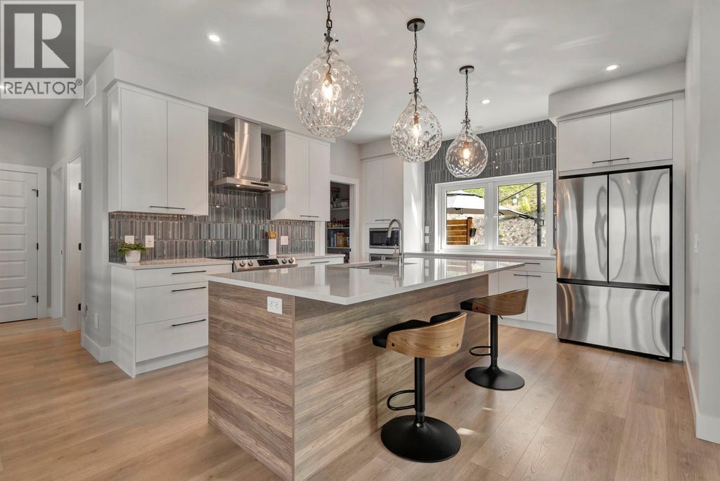 Outstanding VALUE! Last-Chance Luxury in The Ponds — Former Carrington Showhome (NO GST!) Perched above the city in one of Kelowna’s most desirable communities, this incredible home delivers luxury, lifestyle, and location in one stunning package. With over $100,000 in upgrades, this 3-bed, 3-bath walk-up is better than new—designed to impress with custom features and breathtaking mountain and skyline views. The open-concept main floor is built for entertaining, featuring a chef-inspired kitchen with quartz counters, premium appliances, walk-in pantry, and pass-through window to an outdoor sit-up bar. A sleek wine display anchors the living space, flowing seamlessly to a spacious front deck with glass railing and remote blinds. A rear patio and private backyard complete the indoor-outdoor experience. Upgrades include full-height tile backsplashes, custom built-ins, designer lighting, feature walls, and smart home integration. The primary suite is a retreat with dual vanity, tiled shower, and walk-in closet. The entrance level offers a large rec room, third bedroom, and full bath—perfect for guests, teens, or a home office. Set on a fully landscaped lot with underground irrigation, a tranquil water feature, and a rare 3-car garage (double + tandem), this home delivers unbeatable value in a move-in ready package. Located just minutes from top-rated schools, hiking trails, and the convenience of Mission Village. This is a rare chance to own a professionally designed, showhome-quality residence in The Ponds. Own NEW with NO GST! Don’t miss your chance—this one’s a showstopper! (id:6289)