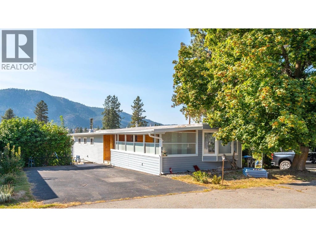 Renovated 2 bedroom, 1 bath mobile home that offers versatility with two additional charming rooms that can be used as an office, bedroom, craft room, or whatever suits your lifestyle. The main living area boasts an open floor plan with a cozy bay window and a view of Peach Cliff, creating a warm and inviting space. The kitchen was renovated in 2023, featuring a tile countertop, oak cabinets, and a spacious island—perfect for entertaining or everyday living. All bedrooms are thoughtfully set away from the main living space, ensuring peace and quiet. The home is wheelchair adaptable, and the bathroom includes a convenient walk-in shower. Outside, enjoy a custom-designed covered deck (16'4 x 9'9) with cedar flooring and live edge douglas fir ceiling, a quaint patio space, and room for a garden. A bonus feature is the four fruit trees offering an impressive 16 varieties! The backyard has a spacious 10'5 x 16 wired workshop with additional storage, and there is ample parking for up to 4 vehicles with back alley access. Recent updates include kitchen renovations, fresh paint, vinyl flooring, vinyl windows, and more—making this home move-in ready. Located just steps from the walking path within the park, you are only a 15 min drive to both Penticton and Oliver, and a quick 5-minute drive to Skaha Lake. The park is pet-friendly and suited towards mature living - creating a quiet and welcoming community. BONUS - Quick possession available! * Some photos are digitally staged* (id:6289)