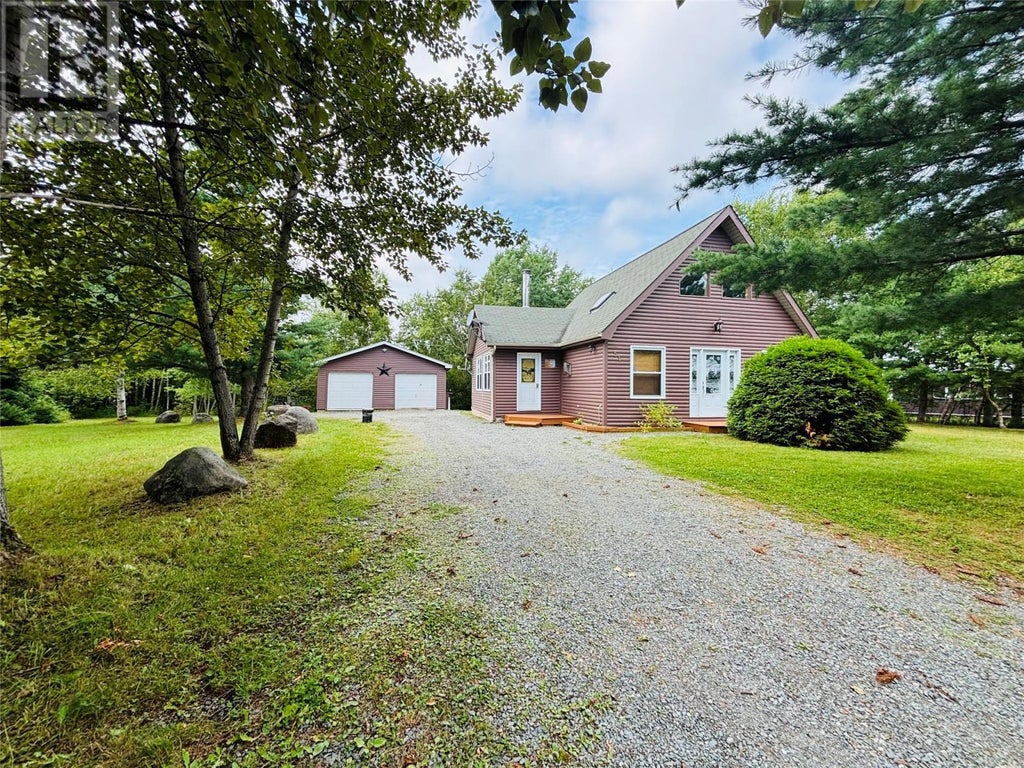 Welcome to 56 Loop Road in the Town Of Terra Nova! An opportunity awaits to own a beautiful piece of property in this highly sought after area. This is a stunning 2 bedroom chalet on over a 1/2 acre of land. Location is ideal with immediate access to the NL Railway Trail System leading across all of NL. Beach and swimming area is just a 5 minute walk. This cabin boasts an open concept feel with full kitchen with sit up peninsula with stools that leads into the dining area. The spacious living room with propane fireplace is perfect to sit back on those winter nights just back from a day in the woods to relax by the fire with family and friends! Primary bedroom is in the loft area on the upper level. A second bedroom is on the main with bathroom as well. A woodstove is located in the mudroom making it ideal to hang your winter jackets and dry. It is perfect for those chilly winter nights. There is also a newly installed Heat Pump to off set heating costs yet have air conditioning in the summer. There is a large double garage measuring 23x23 for all the toys. Nice private yard with firepit to enjoy times around a campfire. Property comes fully furnished! Looking for an investment property? This cabin has been generating money as currently being used as an successful Airbnb business. Extra large lot that can easily hosts another building or family visiting with a camper. Don't miss out on this fantastic opportunity to own a cabin in the highly sought after Town Of Terra Nova! (id:6289)
