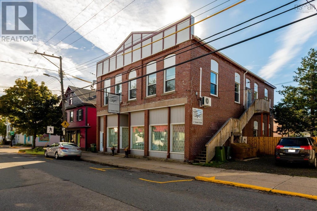 The historic Shafner Building (1901) offers a prime investment opportunity in downtown Bridgetown with both commercial and residential income potential. Exceptional curb appeal in a high-traffic location, this would make a perfect location for many different businesses. The property features over 2000 sq ft of freshly renovated main floor retail space, complete with staff room, washroom, and storage area. Currently leased to Elections Canada (vacating Summer 2025), the versatile space suits various business ventures. Four apartments on the upper floor generate steady monthly income of $3,450, with room for improvement as tenants vacate. The building has undergone extensive restoration, gutted to exterior walls and completely rebuilt with all new systems and energy-efficient heat pumps. Half the roof is new with remaining materials included at closing. Some exterior brickwork requires correction (estimated at $20K, reflected in asking price). Additional features include a 16' x 22' storage building, on-site parking, and an adjoining public parking lot. This landmark property combines Bridgetown history with immediate income and minimal maintenance concerns. (id:6289)
