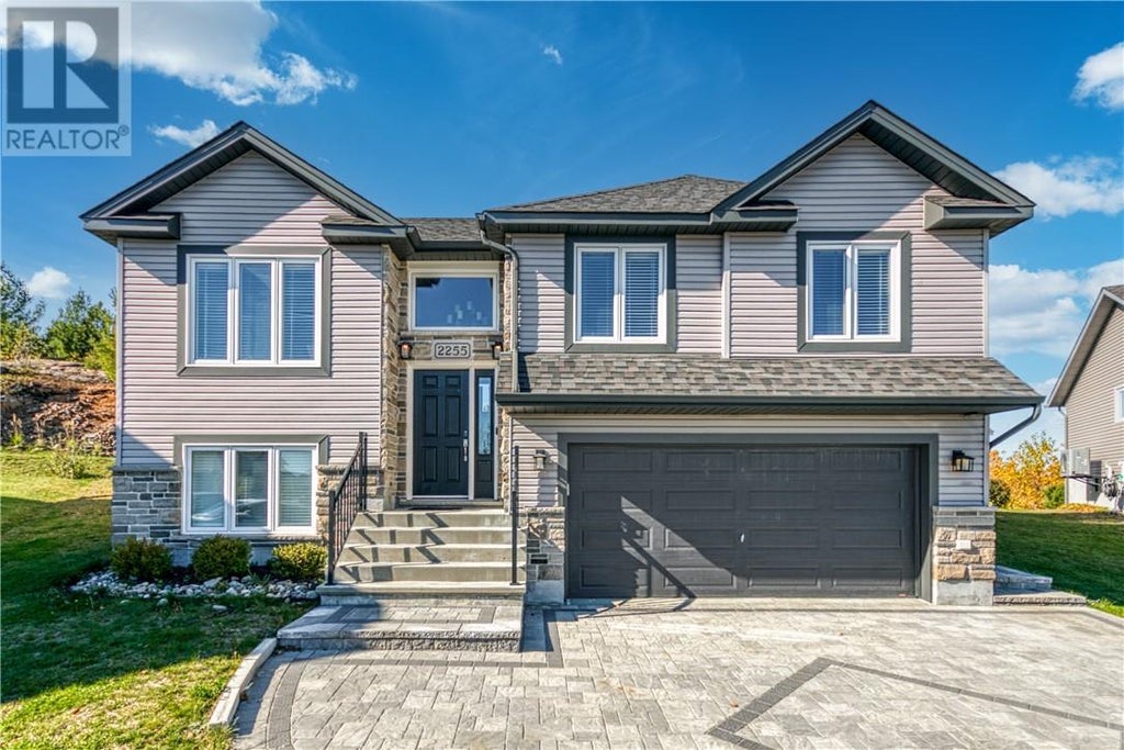 Welcome to 2255 Mallards Landing — an eight-year-young Clover model built in 2017, perfectly situated at the end of a quiet cul-de-sac in Sudbury's sought-after Algonquin neighbourhood. From the moment you arrive, you’ll notice the brand-new lock-stone driveway and walkway leading to the backyard, enhancing the home’s already impressive curb appeal with its modern siding and stone exterior. The cul-de-sac setting offers a true sense of community — a safe, family-friendly spot where kids can play road hockey or ride their bikes without worry. Inside, a bright and spacious entryway welcomes you with vaulted ceilings that create an open, airy atmosphere. The main floor’s open-concept design features a gorgeous kitchen with quartz countertops, classic shaker-style cabinetry, a large island perfect for entertaining, and stainless-steel appliances. The dining area easily accommodates a harvest table and opens to the back deck, BBQ station, and private yard, ideal for hosting family and friends. The living room is framed by oversized windows and soaring 11-foot ceilings, making it the perfect space to relax or connect. Down the hall are two generous bedrooms and a full kids’ bathroom, while the primary suite offers 2 closets (1 a walk-in) and a private ensuite for added comfort. The lower level features a cozy rec room with a gas fireplace and modern stone surround, an ideal space for family movie nights or watching the game. You’ll also find a home office or fourth bedroom, a third full bathroom, and a convenient mudroom with access to the oversized double garage — perfect for keeping things tidy through Sudbury’s changing seasons. Set on a massive pie-shaped lot nearly 200 feet deep, the backyard includes a private bonfire area perched above the yard with beautiful South End views. Surrounded by excellent schools, nearby walking trails, and quiet streets, this home truly offers the best of family living — modern comfort, privacy, and a highly sought-after location. (id:6289)