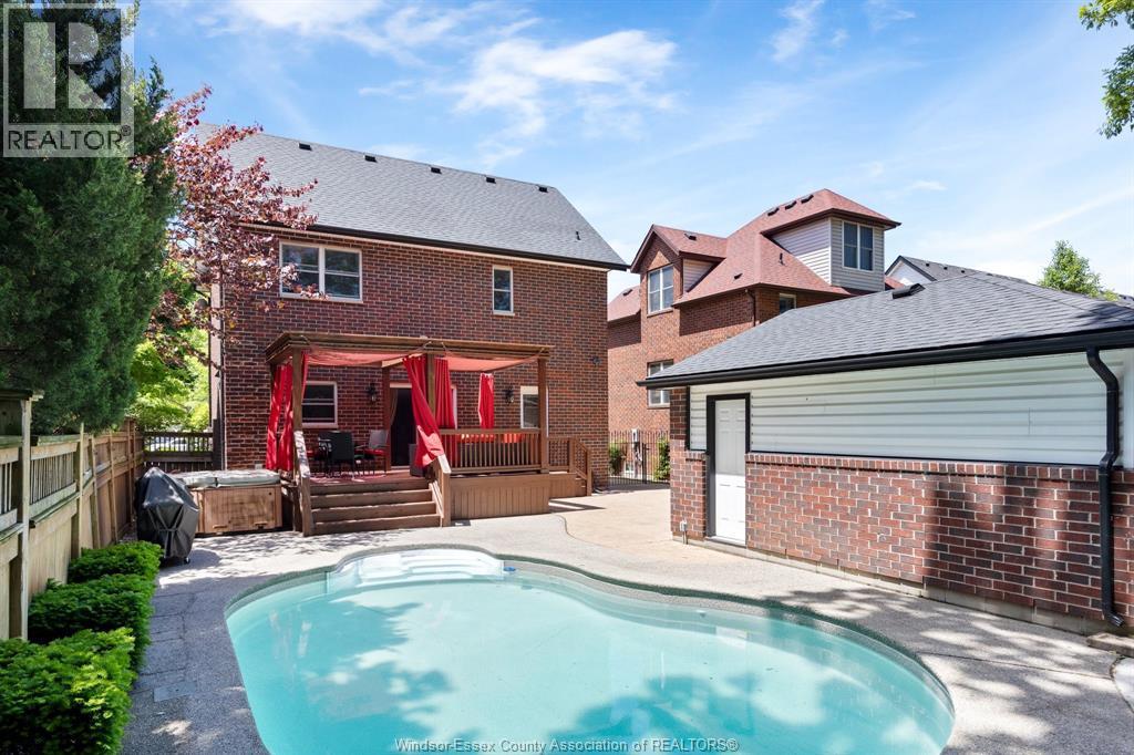 Welcome to this stunning 2.5-storey home in one of East Windsor’s most desirable neighborhoods! Featuring 4 spacious bedrooms, 2.5 bathrooms, and a beautifully updated kitchen, this immaculate home is truly turn-key. Enjoy the convenience of a main floor ensuite bath, 2nd floor laundry, and a versatile 3rd-level loft—perfect as a home office, extra bedroom, or cozy den. The fully finished basement adds even more living space, while the inground pool with safety cover, long concrete driveway, and detached garage make this home ideal for both entertaining and everyday living. Step outside to your private backyard retreat, complete with stamped and exposed aggregate concrete, underground sprinklers, tasteful landscaping, and fully fenced yard. Patio doors off the eat-in kitchen lead to a large deck—perfect for family gatherings! Located just steps from the Ganachio Trail and Lake St. Clair this home offers not only comfort and style but also and unbeatable lifestyle in a resort feel neighborhood. (id:6289)