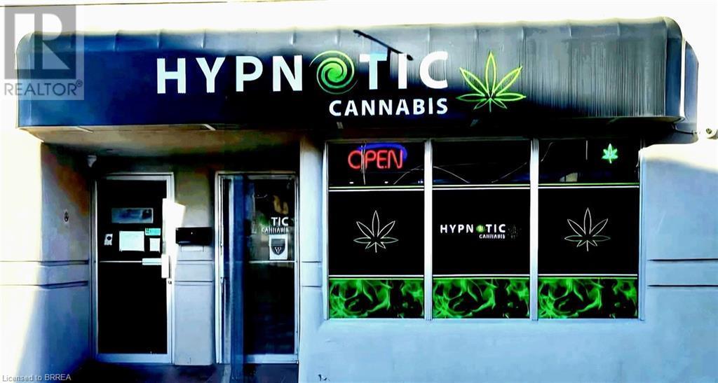 Unique opportunity to own your own retail cannabis shop located in a high traffic area. State of the art legally licensed cannabis retail store in the heart of downtown Brantford. Excellent exposure from daily foot traffic and vehicles. Renovated 1188 sf main floor retail unit with tons of room for expansion of product line. Turn key including all display cases, custom sale counter, point of sale equipment, new $20,000 security system and everything you need for start up. Fully approved security system including 13 cameras, reinforced security bars, ensures peace of mind. Stabilized income with growing sales. Transferrable license. Full basement available for extra storage, 2 bathrooms and a spacious managers office. Purchase price includes inventory at time of completion. (id:6289)