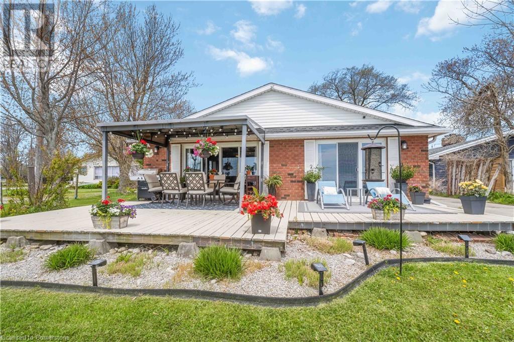 Stunning Waterfront Bungalow – 4 Bed, 2 Bath with Detached Garage! Welcome to your year-round lakeside retreat! This beautifully renovated 4-bedroom, 2-bathroom bungalow offers breathtaking panoramic views of Lake Erie and is tucked away on a quiet dead-end public street, ensuring peace and privacy. The open-concept layout features soaring cathedral ceilings and large patio doors that flood the living room and newly updated primary bedroom with natural light and stunning lake views. Step out onto the expansive deck—perfect for lounging, reading, or enjoying morning coffee on the cozy patio. During cooler months, gather around the cozy floor-to-ceiling stone gas fireplace for warmth and relaxation. Just steps from your door, enjoy direct access to your private pebble and sandy beach —ideal for families and water lovers alike. Outdoor enthusiasts will love the nearby activities, including horseback riding, bird watching, lakeside walking and biking, boating, fishing, and golfing. For convenience, shopping and dining options in Dunnville are only 10 minutes away, offering everything from quick bites to sit-down restaurants.The property includes a detached 1.5-car garage, spacious backyard and is available with flexible closing. For a truly effortless move-in experience, the seller is also offering the home fully furnished—just turn the key and start enjoying lake life. Don't miss this incredible opportunity—schedule your showing today! (id:6289)