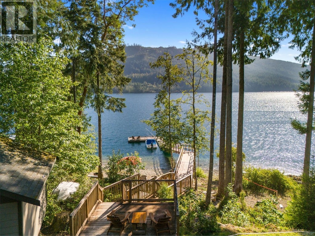 Discover the ultimate waterfront home at 9380 Creekside Drive, a stunning property situated in the picturesque community of Youbou, Vancouver Island. This exceptional home offers an expansive great room that seamlessly integrates the kitchen, living, & dining areas, designed to capture the breathtaking views of Cowichan Lake. The kitchen is perfect for the entertaining, featuring stainless steel appliances & ample counter space. The living area is enhanced by a cozy wood stove, creating a warm & inviting atmosphere. Step out onto the covered deck and enjoy serene lake views—perfect for relaxing or entertaining. The primary bedroom is a luxurious retreat, complete with french doors leading to the covered deck & an elegant ensuite bathroom. This spa-like space includes heated floors, a separate tub & shower. Two additional bedrooms on the main floor offer their own private bathrooms, enhancing convenience and comfort. The main floor also includes a well-positioned laundry room for added ease of living. The lower level of the home adds even more space with three additional bedrooms and a convenient half bath. The home is equipped with a built-in vacuum system and two heat pumps, ensuring year-round comfort. A wood stove provides additional warmth, while the double attached garage with a storage area and a full-height 3rd level, which includes a three-piece bathroom and room for future development, offers plenty of utility and potential. Outside, the property features a beautifully landscaped, flat and useable yard, along with a hot tub for amazing sunrise and sunset views overlooking the lake, and complete with a storage shed and a walkway leading to the dock. Enjoy the beautiful pebble beach and a deep spot within the dock ideal for mooring your boat.This incredible property combines luxury, functionality, and an enviable location, making it a perfect choice for families seeking comfort & natural beauty in their waterfront home. (id:6289)