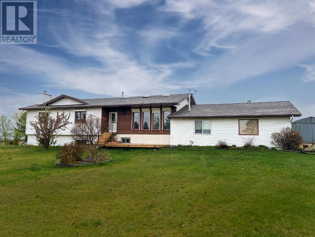 Welcome to this stunning 5-bedroom, 2-bathroom home set on an expansive 8.82-acre acreage, on beautiful crown land, offering the perfect blend of country living and modern convenience. As you enter the home, you'll immediately appreciate the abundance of natural light streaming through the beautiful skylights throughout the house. These skylights, combined with numerous large windows, illuminate the spacious interiors and highlight the natural woodwork finishes, creating a warm and inviting atmosphere. The gorgeous living area is bathed in natural light thanks to the skylights and large windows, providing a serene and airy ambiance. The kitchen is a chef's delight, boasting an abundance of cabinetry and countertop space, along with an eat-up bar perfect for casual dining. The adjoining dining area features patio doors that open to a deck, ideal for outdoor dining and entertaining. The primary bedroom features a large walk-in closet and direct access to a 4-piece bathroom, which also includes a skylight for added brightness. Two additional bedrooms on the main floor provide ample space for family or guests, and the dedicated laundry room adds to the home's convenience. Downstairs, a cozy yet spacious family room awaits, complete with a beautiful stone wood-burning fireplace and a wet bar, making it perfect for hosting and entertaining. This lower level also includes two more bedrooms, an office, and a large storage room, as well as direct access to the garage. Outside, you'll find a double-car garage for parking convenience, a large 40x60 shop, and a shed for all your storage needs. The 8.82-acre property is beautifully treed and adorned with many perennials, creating your own private country retreat. Despite its tranquil setting, the home is in close proximity to town, offering the best of both worlds. Don't miss this opportunity to experience country living at its finest. Check it out today! (id:6289)