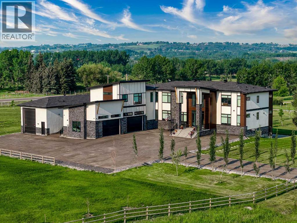 Located only seven minutes from Calgary and across the street from the Carnmoney Golf & Country Club, this exquisite acreage epitomizes luxury and exceptional design. Spanning just under 9,000 sq/ft of living space across three levels, this property boasts eight spacious bedrooms and nine bathrooms, equipped with smart toilets and top-of-the-line fixtures. It features three kitchens, perfect for entertaining and family gatherings, each with modern appliances and high-quality cabinetry. Additional amenities include a fully equipped home gym, a private home theater, and a massive wine cellar ideal for any connoisseur. The heated shop, with its own bathroom and mezzanine, offers a versatile space for various projects or storage needs. The master suite is a true highlight, covering over 700 sq/ft and featuring a private laundry. It opens onto an expansive west-facing balcony, over 800 sq/ft, offering stunning mountain views and a perfect spot to watch golfers at the Carnmoney Golf & Country Club. Every detail in this extraordinary home has been meticulously designed and executed, ensuring that nothing has been overlooked or underbuilt. (id:6289)