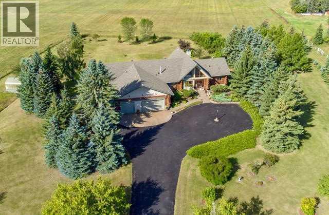 Located ten minutes from the city limits, close to shops and South Campus Hospital,this contemporary, full scribe, log home with over 6000 sq ft of living space and triplegarage, situated in East De Winton, is close to 3 golf courses (Cottonwood G&CC atthe end of the street) with access to the Bow River and world class fishing. TelsecFarms breeding and boarding horse facility is two acreages to the north. This gated,private estate, with beautiful mature landscaping, encompasses a fenced 3 acreproperty around the house with an inline gas BBQ & fire pit and a newly refurbishedgreenhouse. The rest of the 19.2 acres comprises a tree farm with approximately 200spruce trees and the balance being recently cultivated and seeded. There is aseparate gated entrance from the road to the farm side and a gate from the residentialproperty to the tree farm. This passive solar, multigenerational home, is designed tostay cooler in the summer and warmer in winter, saving on energy costs. From theenclosed front porch, the airy main level has open trusses in the great room and foyerwhere light abounds. It comprises 4 baths, 3 beds, a dedicated office (with magnificentunobstructed views of the river valley) great room with floor to ceiling stone fireplace,large dining room, kitchen (with butcher block counters) and breakfast nook, all withbeamed ceilings. Above the office is a quiet reading loft. The main level has a coveredwrap around deck from the south to the west side, offering protection from theelements and a magnificent mountain view to the west. There is also a covered deckfrom the principle bedroom. The walkout lower level, accessed by both the main andsouth staircases, is separated by a spacious mechanical room with a new watertreatment system, two furnaces and hot water on demand. To the north of themechanical room is a magnificent bar and billiard room, two good size bedrooms, a 3piece bath, wine making room with double sink, refrigerator, wine storage and coldroom and lastly a storage/exercise room. To the south end, accessed from the garage,back hall and south staircase you will find the laundry room, (with a chute from themain level), a further large bedroom with ensuite bath and walk in closet, full eat inkitchen (with patio doors), and spacious living room with floor to ceiling stone fireplace,all with big bright windows. Outside you will find a full length, west facing, privatecovered concrete patio, with beautiful rock gardens to be admired from inside and out.The lower level is serviced by underfloor heating as well as forced air from above.There is further underfloor heating on the main level to the north part of the house andPhantom screens on all patio doors, except the billiard room. (id:6289)