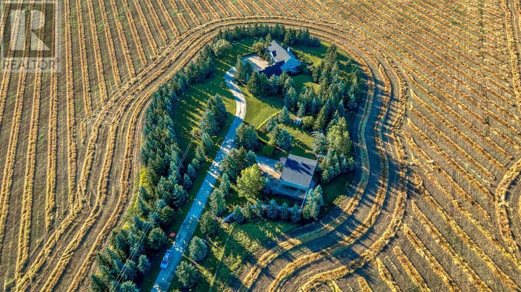 Welcome to your dream country home! Located only 15 minutes West of Calgary off Highway 8, this incredible location keeps you within a very easy drive to amenities while offering all the glory of country living. The picturesque 140 acres is currently being farmed but offers countless opportunities for pastureland, animals or leasing. The home provides complete privacy from any neighbors and proudly displays the spectacular views of peaceful farmland, the rolling foothills and the majestic Rocky Mountains from every angle. The entrance along the winding, tree-lined driveway immediately sets the stage for the tranquility of entire property. Fully lined in mature Spruce trees and perfectly accented with hedges, shrub and flower beds, the breath-taking landscaping is something that takes years achieve. Not only are the mature trees along the driveway into the property, but line the entire perimeter of the 140 ares, something you would see in the estate ranches of Kentucky! The charming Connecticut-styled country home welcomes you with a cozy, covered front porch, soaring peaks and rooflines accented with arched and mullioned windows and a triple attached garage adorned with a weathervane topped cupola. This bungalow-styled home offers numerous outdoor spaces to enjoy the peaceful surroundings. The main level boasts vaulted ceilings, two bedrooms, a home office that can be used as a third bedroom and a bright and sunny open floorplan. Recent renovations include kitchen updates, all new stainless-steel appliances, updated bathrooms, a new roof, a new hot water tank and a new furnace. The lower-level walkout offers two additional bedrooms, a family room, a gym space, a games room and a wet bar. This well-appointed and immaculate home is spacious enough for a large family without being too large to age in place. Whether you are looking for a weekend retreat, a full-time home outside the city, a place to run a farm or boarding facility or an investment property, this on e-of-a-kind home is everything you could ever dream of. (id:6289)