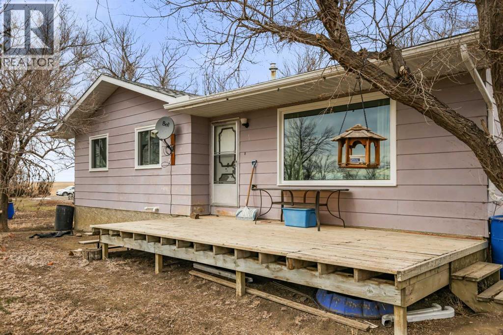 **Charming Bungalow on 4.87 Acres – Perfectly Located for Country Living with City Convenience!**Welcome to this lovely bungalow situated on 4.87 acres, just 16 miles northeast of the Town of Vulcan. Offering the best of both worlds, this property provides a serene country lifestyle while still being centrally located – only an hour away from Lethbridge, Strathmore, and High River, and just 1.5 hours to Calgary!This 1,137 sq.ft. bungalow features a spacious country kitchen and a cozy living room with a large picture window that frames picturesque views of the surrounding countryside. The main floor includes 3 bedrooms, a full bathroom, and a convenient laundry area. The partially finished basement offers additional living space with 1 bedroom (window does not meet egress), a generous family room featuring a wood-burning stove, perfect for those chilly winter nights. The heat from the stove warms the entire home! Additionally, there's a 3-piece bathroom and plenty of storage space. A standout feature of this property is the oversized, detached double garage/shop that was added in September 2023. This heated space is perfect for anyone needing a workshop or extra storage! Some noteworthy recent updates include the septic tank rebuild in 2023, pressure tank and points brought into the home (Feb. 2024), a new furnace installed in September 2024 with rough-in for air conditioning and all ducts cleaned, a new hot water tank (Oct. 2024), new front and back windows (2024), eavestrough replaced (2022), and a new roof (2017). This private acreage offers the ideal setting for someone looking to escape the city while still being close enough to commute in any direction. A added Bonus is just minutes to Lake Mc Gregor with amazing Activities allowed perfect to have just around the corner! It's ready for a new owner to add their personal touch and make it their own. Don’t miss the opportunity to own this peaceful retreat! (id:6289)