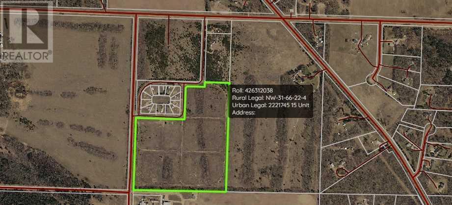 Investment alert! 37.2 Acres of developable land in an established bare land condo close to Athabasca. Just minutes north of town, there are proposed plans with this land for 45 additional lots for cabins, manufactured homes or RV's starting at 3/4 of an acre along with a community garden, washroom facilities, outdoor pool area and parking lot. Gas and power are available but are not yet installed. The land can be sold as part of the condominium corporation or could be segregated and sold as fee simple ownership. (id:6289)