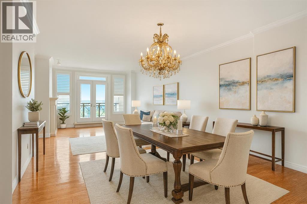 A chance to rightsize your life without downgrading your lifestyle! Clean, redesigned + ready to go: this is the best value in the renowned Renaissance adult complex in upper Briar Hill. Spread out over 1,300 sqft, this 2 bed + den + 2 bath south facing unit comes equipped with 2 underground parking stalls while boasting an open concept floor plan, hardwood flooring, fresh paint and views to the mountains + city styline. A clean white kitchen showcasing quartz countertops, dual sink, pantry + breakfast bar. Don't miss the smartly positioned den with built-in desk and loads of storage. Enjoy ample room to host friends and family in the amalgamated living + dining areas. Cozy up to the gas fireplace or head out to the patio to fire up the BBQ and really take in those amazing views! Retreat to the bright primary bedroom and unwind in the ensuite featuring a walk-in closet, dual sinks, redesigned glass enclosed shower + separate soaker tub. The guest bedroom is right across from the 3 piece bathroom for easy access. Rounding out the perks are in-suite laundry, 2 underground parking stalls + oversized storage room for your seasonal items. You won't find better onsite amenities in the city! The building hosts a meeting room, movie theatre, arts + crafts space, games room, gym, library, guest suites, full time concierge, car wash bay, a huge common terrace and private access into North Hill Mall. A location second to none as you are mere minutes to the c-train line, grocery, restaurants, SAIT, U of C and downtown office core. It's time to get excited about your next phase in life at The Renaissance. (id:6289)