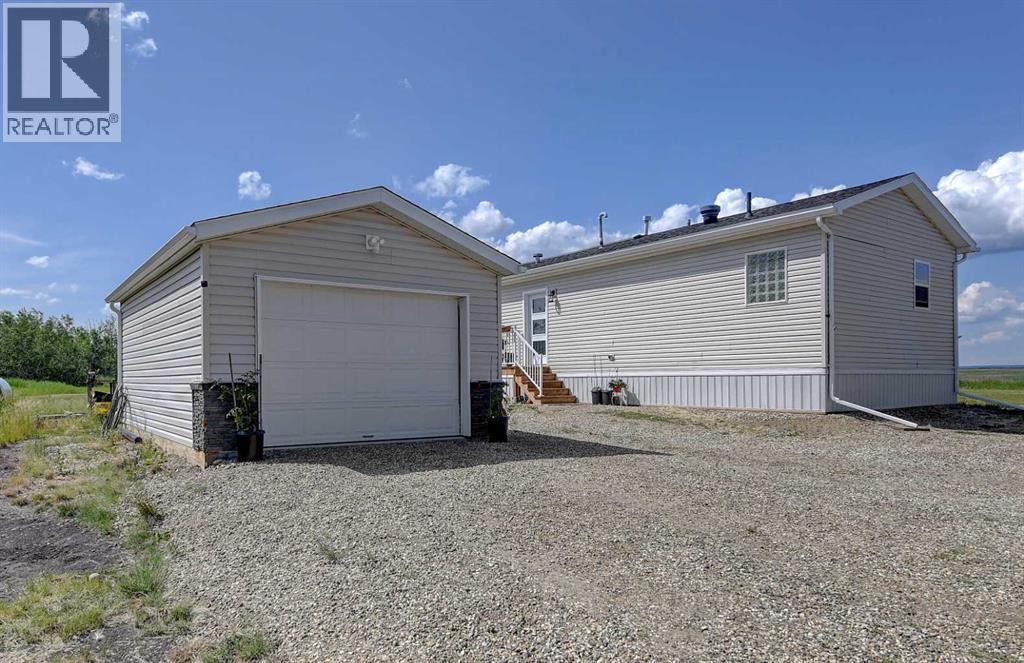 Discover the perfect blend of peaceful rural living and convenient access to city amenities on this magnificent 122-acre property. Ideally situated just northeast of Grande Prairie and southeast of Sexsmith, offering unparalleled opportunities whether you envision a thriving hobby farm or a private family estate. Approximately 20 acres of mature trees and a dugout provide a picturesque backdrop, while ample cultivated land is ready for your agricultural pursuits, all supported by essential infrastructure including a 240-foot deep well, a two-stage septic system with pump-out, power to the home and garage, and a high-grade gravel driveway, with natural gas available at the property line. The heart of this property is an upgraded 2012, 1,526 sqft modular home boasting gorgeous views and versatile options—move in and enjoy, relocate it once you build your dream home, or potentially keep it as a second residence or rental. This beautifully appointed 3-bedroom, 2-bathroom home features espresso cabinets, stainless steel appliances, updated trim, new flooring, new hot water tank, heavy-duty skirting, and a spacious deck with aluminum railing. The primary bedroom is a true retreat with a large full-length closet and a double-sink ensuite with jetted tub and a separate shower with glass doors. The sizeable living room impresses with vaulted ceiling, an abundance of large, bright windows. Complementing the home are a 14x22 detached garage and a brand-new 10x24 shed with dedicated wood storage. Possibilities are truly endless with so much diverse land so close to town. Move in and start enjoying your rural lifestyle today! (id:6289)