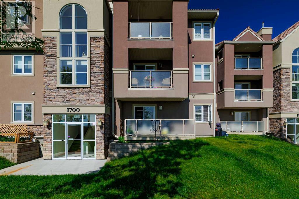 Welcome to this bright and inviting 1-bedroom, 1-bathroom ground-floor unit in the sought-after Edgecliffe Estates in Edgemont — one of Calgary’s most established and park-rich communities. Enjoy well-designed living space featuring a large living room with a cozy corner gas fireplace and direct access to a private east-facing covered deck — the perfect spot for your morning coffee or relaxing outdoors. With ground level access, it's ideal for pet owners or for anyone who loves a touch of nature at their doorstep as it feels like your own private grassed area as you don't look onto any other units. The open-concept layout includes a very functional kitchen with updated cabinets and countertops, a spacious dining area (owners used it as an office), and a generous primary bedroom with a large closet. The four piece bathroom boasts an updated countertop, new tub surround and new bathtub faucet, both recently replaced. Enjoy the convenience of in-suite laundry (washer and dryer are both under 2 years old), and an assigned outdoor parking stall with plug in, just steps from your front door. Edgecliffe Estates offers exceptional amenities including secure building doors, a residents-only clubhouse with an indoor swimming pool, hot tub, steam room, fitness centre, and social/games room with pool and ping pong tables. Condo fees include heat, water, sewer, maintenance, insurance, and professional management. Pet-friendly (dogs and cats allowed with board approval) and ideally located within walking distance to schools, parks, restaurants, and shopping — plus easy access to Shaganappi Trail, John Laurie Blvd, and major roadways. Minutes from Superstore, Costco, Northland Mall, Market Mall, U of C, SAIT, and Foothills & Children’s Hospitals. Whether you're a first-time buyer, downsizer, or investor, this unit offers incredible value, lifestyle, and location. Immediate possession available. (id:6289)