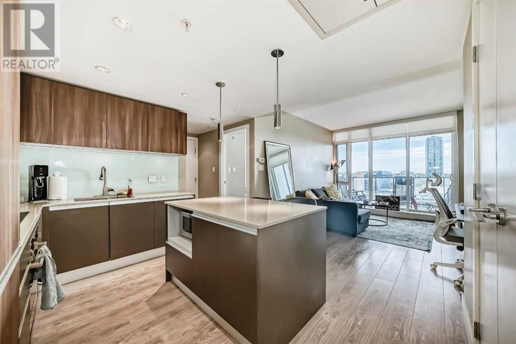 Welcome to The Guardian – Calgary’s Tallest Residential Tower, Ideally Located in the Heart of the Beltline. Experience elevated urban living in this modern, thoughtfully designed 1-bedroom, 1-bathroom unit in one of Calgary’s most iconic high-rises. With a smart layout and upscale finishes, this home is perfect for first-time buyers, professionals, or investors seeking a turnkey downtown lifestyle. Floor-to-ceiling windows flood the open-concept living space with natural light and showcase breathtaking views of the city skyline and Rocky Mountains. Step onto your private balcony to soak in the energy of downtown Calgary. The stylish kitchen features quartz countertops, a glass tile backsplash, and integrated appliances that maintain a sleek, seamless look. The spacious bedroom offers a large closet, and the 4-piece bathroom is finished with modern fixtures and clean design. Additional highlights include in-suite laundry, a titled underground parking stall, and access to premium amenities: a fully equipped fitness centre, elegant party room and lounge, hobby workshop, and 24-hour concierge and security. Just steps from Stampede Park, the BMO Centre, C-Train, and some of Calgary’s best dining and shopping, this location offers unparalleled convenience. Don’t miss your chance to own a piece of Calgary’s skyline at The Guardian. (id:6289)