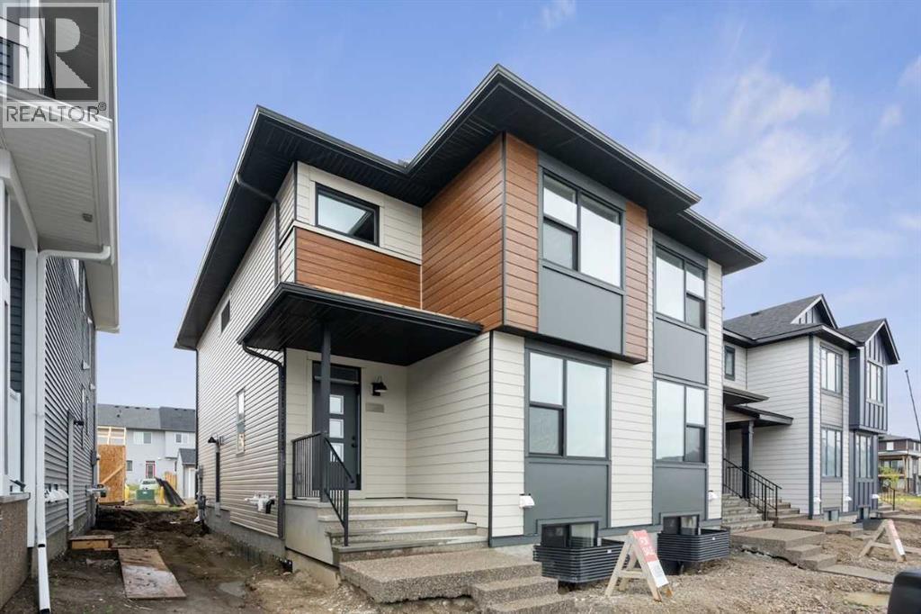 The Lucca by Cardel Homes, a Premium Paired home at 1,814 sq. ft. of well-designed living space. Its farmhouse-inspired exterior features Hardie board and vinyl siding, black-framed windows, and a modern, open-concept layout. The interior boasts luxury vinyl plank flooring throughout the main floor, upper-floor loft, and hallway, creating a cohesive feel. The rear-facing kitchen overlooks the backyard and features Winter-stained maple cabinetry, quartz countertops, and Samsung stainless steel appliances. A chimney hood fan, large island, and picture window above the granite sink elevate both style and practicality. A functional back entry and walk-in pantry, ensures everyday convenience. At the front, a main-floor bedroom and full bath provide flexibility. Upstairs, the primary bedroom offers a dual-sink ensuite, while two additional bedrooms are separated by a loft space and a conveniently located laundry room. Cardel Homes offers better and design and quality. Photos are representative. (id:6289)