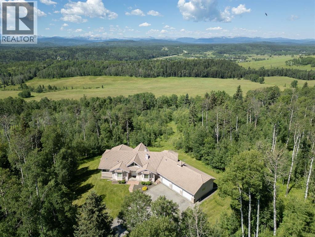 Nestled in the trees on 4.13 acres in Rural Foothills County, this bungalow property offers extraordinary privacy and panoramic, million-dollar mountain and hillside views to the West. Inside, you’re welcomed by cathedral ceilings and large windows that flood the space with natural light. The main level offers over 2,200 sq ft of living space with three bedrooms and two bathrooms. The front sitting room is a highlight of the property, positioned to maximize views of the Rocky Mountains through a dramatic wall of West-facing windows. A gas fireplace anchors the living room, creating a warm and inviting central space. Solid core doors throughout the home add to the sense of quality and craftsmanship. The kitchen is both functional and bright, with white cabinetry, a Bosch gas cooktop, a built-in Dacor oven, a Miele dishwasher, and ample counter space. The dining area is surrounded by windows and finished in hardwood flooring, as is the hallway and kitchen. The new carpet offers softness in the bedrooms and living areas. The laundry room, complete with Miele washer and dryer, is conveniently located on the main floor along with a 4-piece bathroom. The 5-piece ensuite in the primary bedroom features new tile flooring, a deep jetted tub, double vanities, and a separate shower. The suite also includes a walk-in closet with built-in shelving and dual hanging space, offering both functionality and organization. Descend downstairs to the fully developed walkout basement that adds another 2,117 sq ft of living space. With three additional bedrooms, a 3-piece bathroom, and a large family room centred around a wood-burning fireplace with gas starter, built-in shelving, and expansive windows that bring function and light into the lower level. This space is kept comfortable year-round with in-floor heating. The triple-car garage features in-floor heat and provides space for vehicles, equipment, and storage. Exterior access from the garage leads directly into the home through 2 se parate doors. One door leads to the main floor and another to the basement. One of the true highlights of this property is the private walking path that encircles the neighbor hood. The trail loops through a mix of trees and open spaces, offering mountain views, forest shade, and a quiet place for walking or jogging. With benches nestled along the trail, this path offers a rare opportunity to immerse yourself in nature every day. This property offers a rare combination of natural beauty, privacy, and functional living space—ideal for families, multi-generational living, or those seeking a quiet lifestyle just west of Calgary. (id:6289)