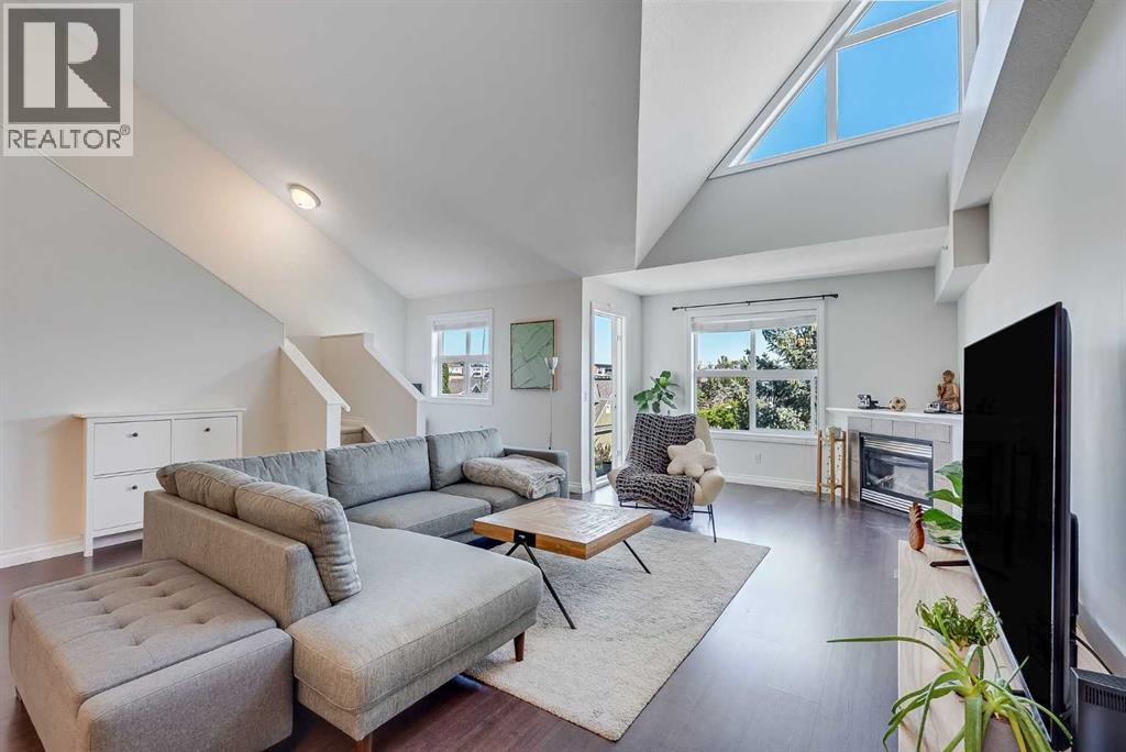 Welcome to this stylish loft condo offering over 1,200 sq. ft. of living space just minutes from downtown Calgary.This bright, open floor plan features vaulted ceilings, dark flooring, and a dramatic wall of north-facing windows that fill the space with natural light and showcase excellent downtown views. The kitchen offers maple cabinetry, custom shelving, and a breakfast bar, perfect for casual dining or entertaining.The spacious primary bedroom includes balcony access, a walk-through closet, and a 4-piece ensuite with a deep soaker tub and separate shower. Upstairs, the versatile loft area is ideal for an extra bed, home office, media room, or creative studio.Additional highlights include a second full bathroom, a cozy gas fireplace, underground parking, and a storage locker. Condo fees include heat, sewer, and water for added peace of mind.Located close to vibrant Marda Loop, Mount Royal University, shopping, restaurants, and transit, this condo offers modern urban living and excellent value for those looking to be near the heart of the city. Don't forget to check out the virtual tour! (id:6289)