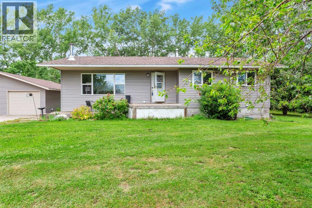 Welcome to this beautiful 1.94-acre acreage just 4 mins from Innisfail and on paved roads then entire making the location of this property very hard to beat. You will drive in on a long driveway and through a beautifully treed and landscaped front yard all the way to the property. This bungalow is 1288 square feet with a beautiful open floor plan in the main area with an open and prefect flowing kitchen and dining area as well as a spacious living room. The home consists of 4 bedrooms with 3 up and 1 down as well and 2 full bathrooms and a half bath too. The living room has a cozy wood stove perfect for cool lazy nights. The basement of the home has the perfect open layout, great for kids being kids or entertaining company. The 3-car heated garage is another unreal perk to this property and allows you a workspace and a parking place all under the same roof. Now the property itself, the private backyard and beautiful deck are absolutely stunning on these summer nights. The yard consists of many fruit trees such as apple, pear, apricot and cherry, along with raspberry and Saskatoon bushes all on the property. The back yard also will have extra storage sheds staying on the property to give you even more room to put everything. Acreage living only 4 minutes from town on all paved roads on 1.94 acres of usable beautiful land with farmland behind it and a beautiful bungalow with 3 car garage to top it off. This home will check a lot of boxes. (id:6289)