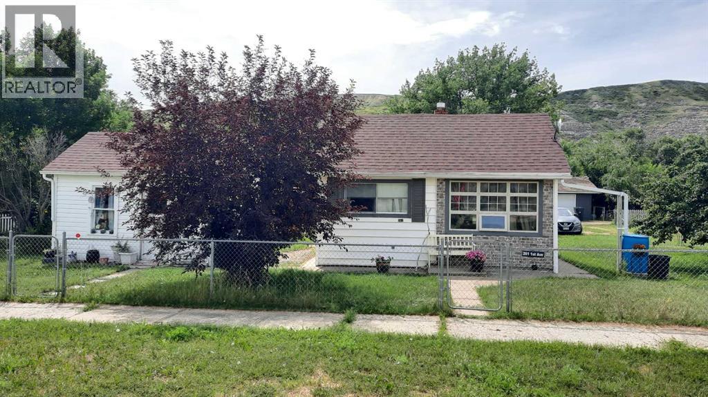 With Stunning unobstructed views of the Canadian Badlands in EVERY direction. This Very Special property has been well maintained and lovingly cared for. With upgraded shingles maintaining the historical color. 100AMP Panel, and newer Drilled well (40 ft) Located with 4 inclusive lots, fenced with party parking for 6 vehicles, RV Parking with sewer hookup and access to energized plug. Firepit area and garden shed. Inside the Home you'll find Kitchen with ample cupboards, main floor laundry, 3pc bathroom, quaint living room, and 2 bedrooms. A separate studio space or 1 bedroom summer guest house with power that use to be a 1930s gambling house. The yard also has Large crab apple, miniature crab tree, rose bush, Lilac, Choke cherry and go-gi berry and rhubarb. East Coulee has so much to offer with music festivals, artists, pancake breakfasts, school museum and a relaxed laid back atmosphere. This Home would make a perfect Summer Cottage ,safe if you want to snowbird or a Fun AirBNB. (id:6289)