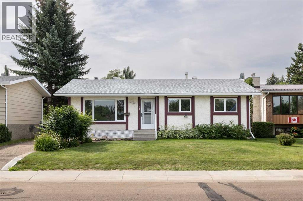 Perfectly situated on a large, 17 Northstar Drive offers the space and comfort you’ve been looking for. This 4 Bedroom, 2 Bathroom Bungalow is well maintained and move-in ready, with functional living spaces and charming details throughout.Inside, you’ll find beautiful hardwood floors, classic wood trim, and a layout that blends everyday practicality with timeless style. The bright Kitchen includes a passthrough to the Living Room—perfect for entertaining or keeping an eye on the kids—along with tons of cabinetry, display shelving, and a built-in coffee bar that adds character and convenience to the adjoining Dining area.The main floor offers three comfortable Bedrooms and a full Bathroom, while the lower level expands your living space with a large Rec Room, one additional Bedroom, another full Bathroom, and a generously sized Laundry Room with extra storage space.Outside, enjoy a covered back patio ideal for relaxing or dining outdoors. The fully fenced yard is beautiful, surrounded by mature trees and shrubs that create a peaceful, natural retreat. A large back shed lends more room for storage and off-street parking adds convenience.Recent updates include a new electrical panel approximately three years ago, a hot water tank replaced two years ago, and a roof on both the house and shed completed about six years ago.Located within walking distance to schools, playgrounds, and scenic walking trails, with quick access to both Highway 2 and 2A, this home is a perfect fit for anyone looking to settle into a move in ready home in an established neighbourhood. (id:6289)