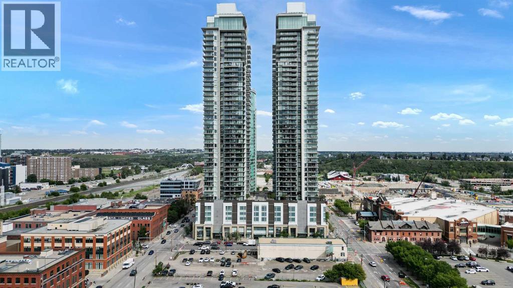 Experience elevated living in this spectacular 2-bedroom, 2-bathroom corner unit located on the 27th floor of The Guardian—Calgary’s tallest residential tower. Perfectly positioned in the vibrant and historic community of Victoria Park, you’re just steps from the Saddledome, Stampede Park, Studio Bell, the new Central Library, and the best of downtown living.This luxury condo offers unbeatable panoramic views of downtown Calgary, the Bow River, East Village, and Stampede Park through floor-to-ceiling windows that flood the space with natural light. The open-concept living and dining area is perfect for entertaining, while the custom Italian Armony Cucine kitchen showcases sleek quartz countertops, a full-height glass backsplash, and high-end stainless-steel appliances.The dreamy primary suite features custom-built-in closets, stunning city and river views, and a spa-like 4-piece ensuite. A scustom-built-in second spacious bedroom, full guest bathroom, and in-suite laundry complete the thoughtfully designed layout.Additional highlights include luxury finishings throughout, an oversized balcony, titled underground parking, and a separate storage locker. Residents enjoy access to exceptional amenities: a fully equipped fitness facility, yoga studio, social lounge with outdoor terrace, workshop, and the peace of mind of full-time concierge and security.Whether you're a professional, an investor, or someone who appreciates style and convenience, this is downtown Calgary living at its absolute finest. (id:6289)