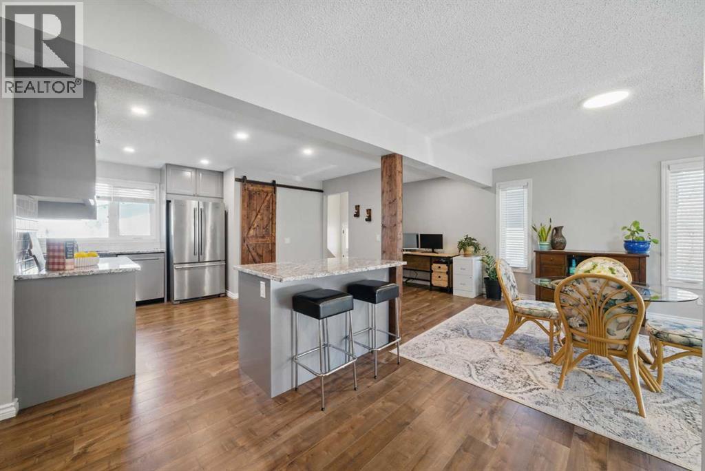 Exceptional Value in Huntington Hills! Extensively improved and thoughtfully reconfigured, this spacious bungalow features an oversized heated double garage, a separate side entrance, and a bright open-concept layout tailored to modern living. The renovated kitchen boasts grey raised-panel soft-close cabinetry, granite countertops, a large island with abundant storage, and a custom pantry with a barn door and herringbone tile. Newer laminate plank flooring extends throughout the main living areas and into a sunny bay-windowed living room. Two generous bedrooms, including a primary with a walk-in closet and 2-piece ensuite, plus a full bath, complete the main level. Downstairs, the basement offers excellent potential with two additional bedrooms (newer egress windows and carpet), a renovated half bath with plumbing for a future shower, a spacious recreation area, and a versatile flex room for a home office, gym, or creative space. Radon mitigation and professionally tied-in window wells are already in place for peace of mind. Outdoors, enjoy a landscaped yard with a composite deck, pergola, BBQ gas line, and a stone patio connecting the deck, garage, and house, plus a Roman circle patio perfect for a firepit. A newer garage door, jackshaft opener, and RV-style back gate add convenience and flexibility. Ideally located close to schools, shopping, transit, and Nose Hill Park. (id:6289)