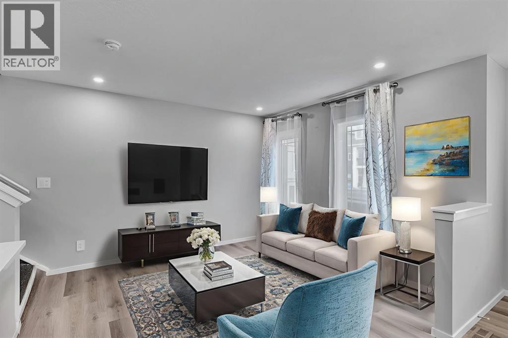 3 BEDS | 2.5 BATHS | DOUBLE CAR GARAGE | NO CONDO FEES – This 2022-built townhome in Southwinds, Airdrie SW offers the ideal combination of space, functionality, and location—with no condo fees and thoughtful design throughout. The home is east-facing, bringing in beautiful morning light through the front windows, while the west-facing private balcony off the primary bedroom lets you enjoy evening sunsets. The main floor features a bright living room at the front, a dining space, and a modern kitchen with quartz countertops, stainless steel appliances, a central island, and plenty of cabinet space. You’ll also find a 2-piece bathroom, a mudroom with built-in shelving, and a front entry closet for extra storage. Upstairs offers three generously sized bedrooms, including a primary suite with a huge walk-in closet, 4-piece ensuite, and direct access to the balcony. Two additional bedrooms, another full 4-piece bathroom, and convenient upper-level laundry complete the layout. The unfinished basement includes plumbing rough-ins for future development. A double attached garage with paved rear lane access, a welcoming front porch, and a family-friendly location close to Windsong Heights School, Chinook Winds Regional Park, playgrounds, and shopping make this a fantastic opportunity in one of Airdrie’s desirable newer communities. (id:6289)