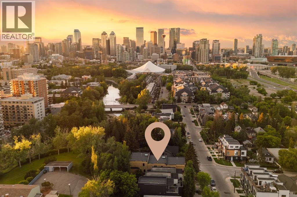 This three storey townhome incorporates modern-traditional interior design elements for a sophisticated and timeless aesthetic. Perched upon a hill in one of Calgary's most iconic river communities overlooking the picturesque skyline, this brand new unit is a culmination of high quality materials, thoughtful finishing selections, and grand inclusions. The attached triple car garage and private elevator are characteristic of the many luxurious additions strategically embedded within this home. The main floor layout includes a chef's kitchen with premium panel-ready appliances, dining room, living area with gas fireplace, powder room, wet bar, built-in desk area, main floor balcony with sweeping city views, and an outdoor BBQ deck at the rear. On the second level there are two bedrooms, each with walk-in closets and 4 piece ensuites, along with laundry and a den. The entire third floor is occupied almost entirely by a spacious primary retreat with another gas fireplace, a walk-in-closet, an attached 6 piece ensuite including a steam shower, bidet and in-floor heating, an additional wet bar, and a third level balcony (designed and loaded for a hot-tub) overlooking the city. This intentional floorplan prioritizes comfort and convenience while maximizing utilization of space. Intricate millwork, ornate wall and ceiling mouldings, curved kitchen island, brush gold accents, 9 foot ceilings, and herringbone hardwood all work together seamlessly to emulate carefully curated beauty. With unrivalled cityscape views, this home is a testament to deluxe inner city living. Notable specifications include: quartz countertops, Spanish porcelain tile, engineered European Oak hardwood, custom designed casing & mouldings, designer light fixtures, LED backlit staircase railings, millwork built-ins, satin brass and matte black hardware, along with rough-ins for speakers, a security system and power blinds.. Situated amongst the natural landscape of the river pathways and surrounded by som e of the city's most notable landmarks in the peaceful community of Erlton. Quickly access the shopping and dining opportunities along 4th street, the brand new Convention Centre, Calgary Stampede Grounds, and get to the downtown core in minutes. Expected Completion September 2025. Renderings are for artistic purposes only and to give a sense of space. Actual specifications of completed product may differ. Inquire for a list of customizable and/or upgradable features. (id:6289)