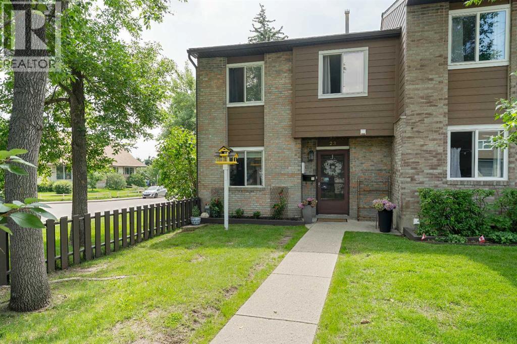 Welcome home to this bright and spacious 3-bedroom, 1.5-bath townhouse located in the highly desirable community of Acadia. Nestled in a peaceful, tree-lined setting, this UPDATED END UNIT offers over 1285 sq ft of comfortable living space and features a sunny south-facing private patio, surrounded by mature trees and backing onto a green space for maximum privacy. Step inside to find gleaming hardwood floors and a large open living and dining area. Patio doors lead directly to your private outdoor space, creating the ideal setting for both relaxing and entertaining. The spacious kitchen is filled with natural light and plenty of cabinet and counter space, along with a cozy eat-in nook. Updates include a stylish backsplash, upgraded stainless appliances and under cabinet lighting. A convenient 2 piece bathroom completes the main level. Upstairs, the primary bedroom offers wall-to-wall closets and enough room for a king-sized bed and more. Two additional good sized bedrooms offer versatility for children, guests or a home office. The updated 4 piece bath on this level adds a touch of luxury. The lower level features a spacious, partially developed basement with laundry, built in vacuum system for the home, tons of storage and endless potential for your design ideas. Your parking stall is conveniently located right in front of the unit. This incredible central location truly has it all—within walking distance to a variety of shops, the C-Train, Co-op and Save-On Foods, restaurants, parks, playgrounds, and several schools. Just blocks away are the Acadia Aquatic & Fitness Centre, Acadian Rec Complex, and the Osten & Victor Tennis Centre—perfect for those seeking activities in their community. This well-managed complex boasts a healthy reserve fund and is pet-friendly with approval. The board has done an excellent job maintaining the grounds and building structures. Don’t miss the opportunity to own this unique property—ideal for a growing family, first-time buyer, or savvy investor. (id:6289)