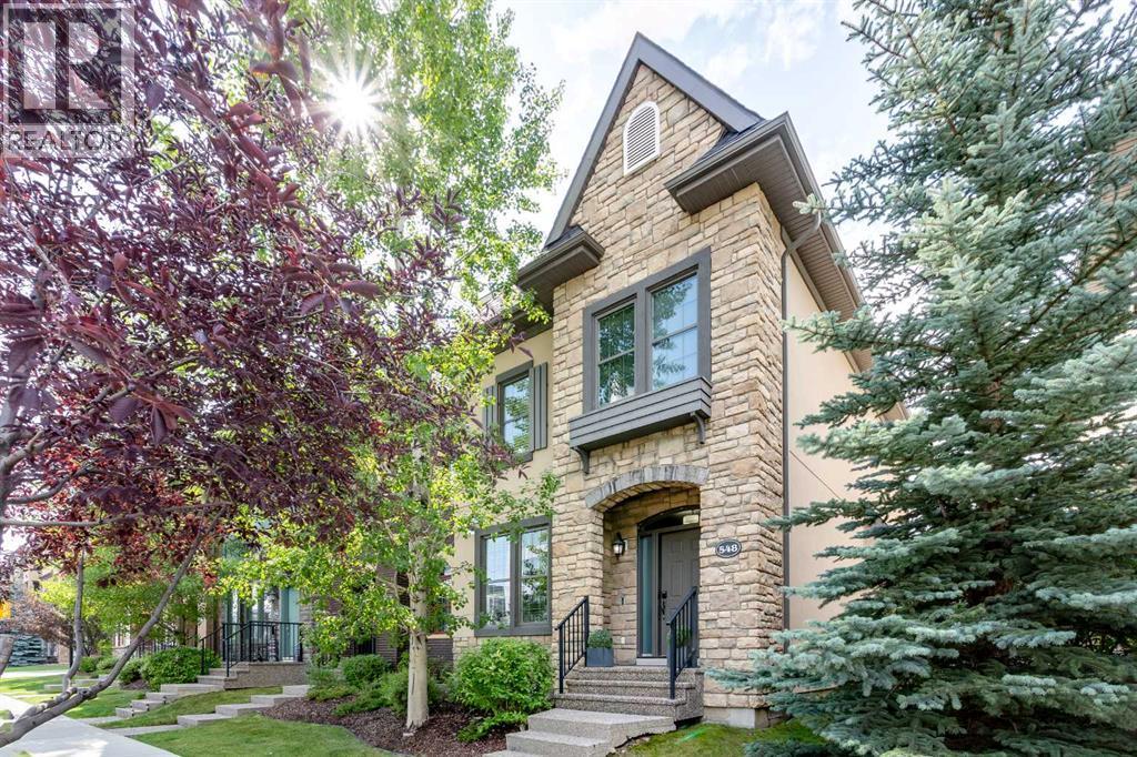 IMMACULATE & MOVE-IN READY! This stunning END UNIT executive townhome is tucked away in the sought-after riverside community of Quarry Park, offering an unmatched blend of style, comfort, and convenience. Boasting a sun-filled, open-concept design, this home features rich hardwood floors, a chef-inspired central kitchen with a large island, sleek quartz countertops, and a premium stainless steel appliance package. The dining area is surrounded by expansive windows, framing a picturesque view of the sunny, south-facing backyard—perfect for entertaining or relaxing. Upstairs, you’ll find two generous primary suites, each with spa-like ensuites and walk-in closets, plus a versatile loft/office space and a conveniently located laundry room. The fully finished basement expands your living space with a bright family room, an additional bedroom with walk-in closet, and another full bathroom. Air conditioning, a double insulated garage and paved lane access complete the package. Located just steps from Quarry Park’s boutique shops, restaurants, and YMCA fitness facility, you’re also a short stroll to the Bow River pathway system, ideal for walking, cycling, or simply enjoying the scenery. Quarry Park is known for its quiet, park-like setting, quick access to downtown, and close proximity to major routes, making it one of Calgary’s most desirable places to call home. (id:6289)
