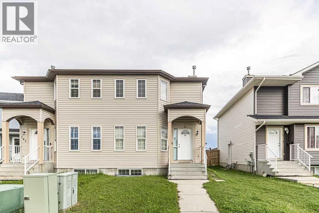 Welcome to this side by side duplex with LEGAL SUITE, perfect for first time home buyers or investors. Upon entering main floor features a good size living area, Kitchen, Dining area and 2pc bathroom. Upstairs you will find a primary bedroom with cheat door to 4pc bathroom and another 2 bedrooms. LEGAL SUITE offers one decent size bedroom, kitchen, Dinning area, 4pc bathroom and laundry room. This duplex is located walking distance to Schools, Grocery Stores, Major Banks, Saddletown C-train Station, Bus Stops, Genesis Centre and much more. Call your realtor for private viewing. (id:6289)