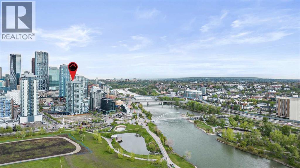 Welcome to The Verve—where modern design meets unbeatable convenience in Calgary’s East Village. Built by award-winning developer FRAM + Slokker, this 2-bedroom plus flex space, 2-bath condo combines sleek finishes with thoughtful design in one of the city’s most vibrant communities.Step inside to a bright, open layout with 9’ ceilings and floor-to-ceiling windows framing sweeping city and river views. The Euro-inspired kitchen features quartz countertops, stainless steel appliances, and a large eat-in island, perfect for casual dining or entertaining. The primary bedroom includes a private ensuite, while a second bedroom and flex space offer versatility for guests or a home office. Oversized tiled bathrooms, in-suite laundry, and a spacious balcony with gas BBQ hookup add everyday comfort and style.Life at The Verve comes with premium amenities: a fitness studio, resident lounge with kitchen, a landscaped courtyard with cabanas, and a rooftop Jacuzzi overlooking Calgary’s skyline. Secure underground parking, bike storage, and visitor stalls make urban living effortless.Outside your door, discover the best of East Village—river pathways, St. Patrick’s Island, the New Central Library, cafés, restaurants, and shops. With the CTrain just blocks away and quick access to Inglewood, Kensington, 17th Ave, and Stephen Ave, this is city living at its best. (id:6289)
