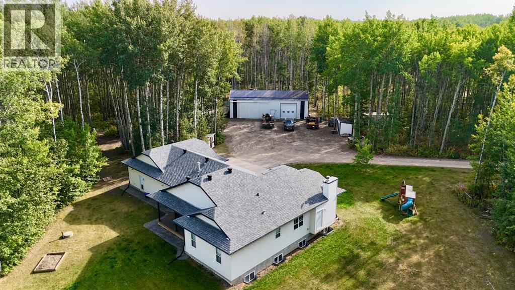 Amazing Location! Nature Lover's Paradise! Welcome to this beautiful custom-built bungalow, perfectly situated on just under 10 acres. Tucked away on a quiet dead-end road southwest of town, this property offers the ideal balance of privacy and convenience, with all amenities less than a 20-minute drive away.Inside this must see home, you’ll find a thoughtfully updated interior featuring maple cabinetry, durable vinyl plank flooring, and an abundance of storage throughout. The spacious living room, complete with a cozy wood-burning stove, creates a warm and inviting atmosphere for cooler evenings. The main floor includes a generous primary suite with ensuite, along with the convenience of main floor laundry.The fully developed basement extends your living space with two additional bedrooms, in-floor heating, a large storage room that could easily double as an office, and a full bathroom with double sinks. There is also potential to add one or two more bedrooms if desired, making this home adaptable for any family’s needs. Direct access from the basement to the garage adds everyday practicality.Outside, the landscaped yard is a true highlight. A well-established garden, fencing set up for horses, a large pond, and a 32 x 60 shop provide endless opportunities for both hobby farming and recreation. With crown land and the Wapiti River nearby, you’ll enjoy endless outdoor adventures including trail riding and exploring.This home and property is a nature lover’s dream—peaceful, private, and perfectly located. Don’t miss your chance to own this stunning custom-built bungalow in a truly exceptional setting! (id:6289)