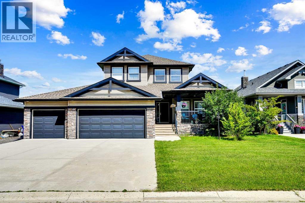 This gorgeous custom-built Stepper home sits on a spectacular 8,200 sq. ft. lot with a triple garage and an unspoiled walkout basement featuring soaring ceilings. Backing directly onto the golf course, the home offers breathtaking views from all three levels—whether you’re relaxing on the main floor balcony, enjoying the great room’s wall of windows, or envisioning your future development in the walkout basement.The spacious kitchen includes granite countertops and a walk-in corner pantry. The main floor features a bright great room with fireplace, a bedroom, 2-piece bath, and a convenient laundry/mudroom. Upstairs you’ll find three generous bedrooms plus a bonus room. The luxurious primary suite includes a walk-in closet, dual sinks, an oversized shower, and a relaxing tub.Enjoy sunsets on the massive south-facing covered porch. With plenty of driveway space for your RV or boat, this property combines elegance, functionality, and unmatched views. (id:6289)