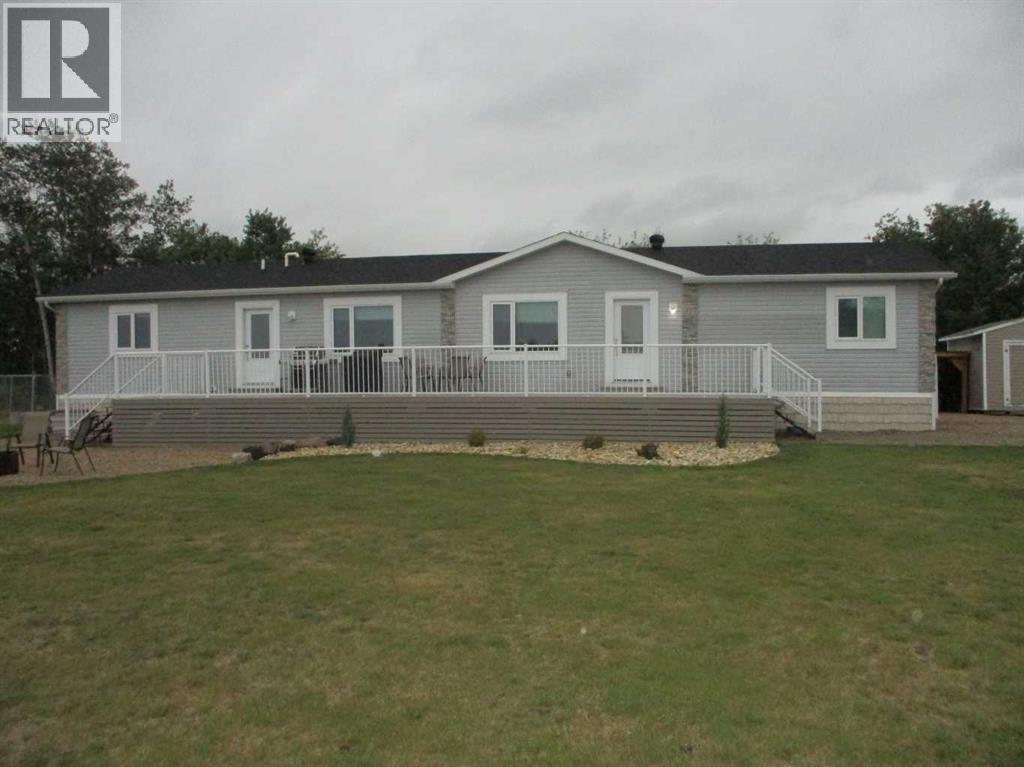 Spacious 2018 modular home offering 1672 sq. ft. of comfortable living space on 6.35 acres, just 4.5 miles west of Manning with town water. This 22x76 home features 4 bedrooms, including a large primary suite with walk-in closet and 4 piece ensuite. Bright and inviting with neutral tones, white cabinetry, and air conditioning for year round comfort. The well designed kitchen provides convenient access to both the pantry and laundry area. Enjoy outdoor living with a large deck complete with railing, landscaped yard, fire pit, 2 storage sheds and a lean-to for extra storage. A great opportunity to enjoy acreage living with modern comfort and close to town convenience. (id:6289)