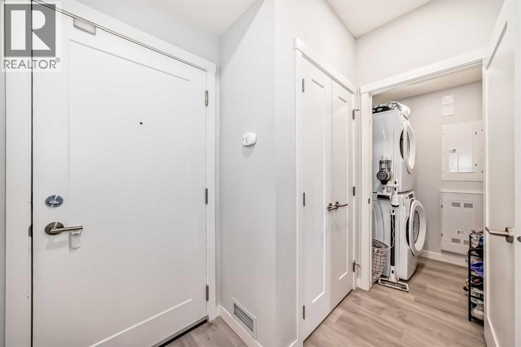 Sought after Shawnee Slopes has a listing just for you! This gorgeous 3rd floor, 2 beds, 2 bath 788 sq. ft. home, features 9' high ceilings and an open floor plan that encompasses the living room and gourmet kitchen. Here you will find a center island with storage, stainless steel appliances, granite countertops and chevron tiled backsplash. This 3rd floor unit has a light-coloured palette, luxury vinyl plank flooring throughout. The balcony has a gas hookup for your BBQing convenience. The primary bedroom offers a large walk-through closet and the second bedroom has a good-sized closet as well. The main bath boasts of a deep tub and tall counter and the laundry machines are full-sized. You'll have access to a titled underground parking stall and storage unit. The condo is close to Fish Creek Provincial Park, C-train station, playgrounds, St. Mary's University, and Shawnessy Shopping Centre. Macleod Trail is easily accessible. It's the perfect place to call home! This is a great first home purchase or a reliable investment property. Currently tenanted until March/26 but this is negotiable. Tenant rights apply. (id:6289)