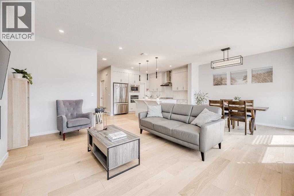 Unobstructed sunshine promotes lush greenery during spring and summer, while in winter the sun fills the entire living room and master bedroom with light and warmth.On the main floor, natural light pours through upgraded hugesouth-facing windows and patio doors, accentuating the bright,open-concept layout. The elegant living room, anchored by adesigner fireplace, flows seamlessly into the showpiece gourmetkitchen, which features:• Premium built-in Fisher & Paykel appliances• Sleek quartz countertops• A large center island perfect for entertaining• Dual sliding patio doors that extend dining and entertainingto the outdoorsA private main-floor office with east facing window offers apeaceful and productive space for working from home.The basement, completed by the builder, includes two spaciousbedrooms and a private side entrance—making it an idealmortgage helper. A Brick Paved path adds easyexterior access. Inside, high-end engineered hardwood flooringand custom cabinetry enhance the sense of quality and care.Upstairs, you'll find:• Three spacious bedrooms, each with walk-in closets andinterior lighting• A large bonus room, ideal for family lounging or play• A luxurious 5-piece ensuite in the primary bedroom featuringfull tile finishes, a spa-inspired bath, and a custom walk-incloset• A beautifully upgraded guest bathroom with a fully tiledwalk-in showerOutside, the professionally landscaped yard is ready forrelaxing or entertaining. The home is perfectly located close toparks, shopping, and offers quick access to Stoney Trail forcommuting ease.Future-ready for families— Moraine (Ambleton) communityplan includes a Catholic high school and elementary school,providing long-term value and peace of mind.Don't miss this exceptional opportunity to own a move-inready, feature-rich home in one of Calgary’s fastest-growingcommunities. Book your private showing today! (id:6289)