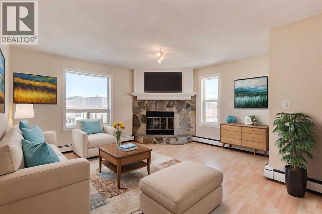 Welcome to this fantastic top-floor corner unit in the heart of Sunalta! Offering 2 spacious bedrooms & a bright, open layout, this home is ideal for entertaining or enjoying the best of inner-city living. The island kitchen provides plenty of counter space, an updated backsplash, & excellent storage, while the generous living room is anchored by a charming corner wood-burning fireplace & access to an oversized balcony with downtown views—perfect for relaxing or hosting guests. The adjoining dining area easily accommodates dinner parties or casual meals with friends & family. Two well-proportioned bedrooms, in-suite laundry, & a full bathroom add to the comfort & functionality. This unit also includes the convenience of heated underground parking. Updates include: new washer, dryer & dishwasher, new bathroom flooring (subfloor & tile), new windows & Poly B removed from building. All of this in a prime walkable location—steps to the LRT, shops, cafés, & even an easy stroll to work downtown! Welcome home! (id:6289)