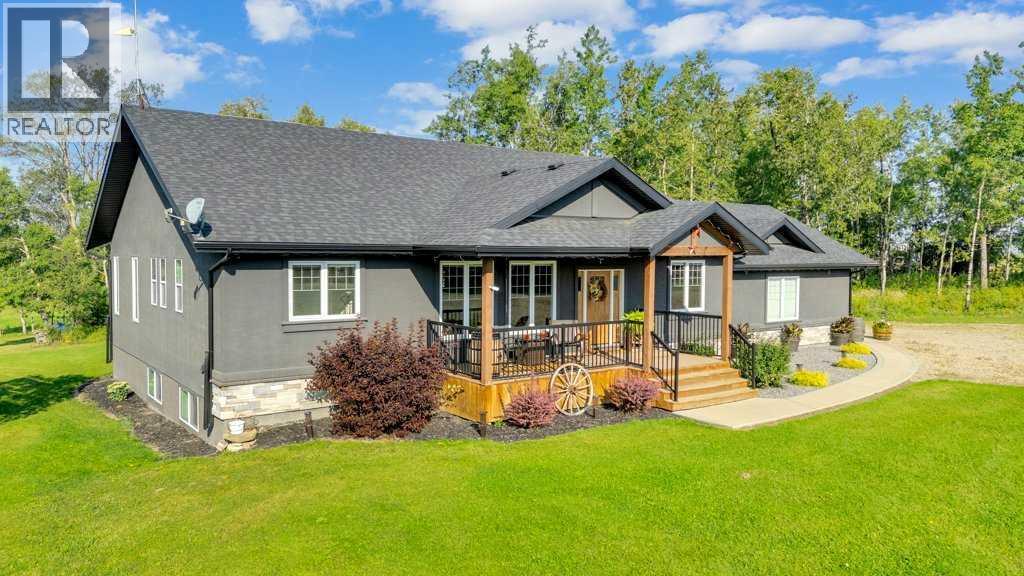 Are you dreaming of wide-open space, fresh country air, and a place where you can enjoy a life of quality and comfort? Currently set up for horses, this property offers countless options with excellent highway access! Located about 20 minutes NE of Rimbey, AB, this 78.5 acres boasts a beautiful 4 bed, 3 bath bungalow with oversized attached garage, 1,600 sq. ft. shop, corrals with cross-fenced high-producing pasture, a landscaped yard, greenhouse, pergola, and more.Every aspect of the Custom-Built Smart Home has been thoughtfully designed by people who understand life in the country. Details that make living easy include a walk-through butler’s pantry leading to the kitchen, conveniently located just off the oversized garage. The open-concept floor plan features a large dining and living area, showcasing the chef’s kitchen with its large island and 6-burner gas stove with electric oven. The primary suite includes an ensuite with access to the main level laundry, a walk-in closet, and extra touches like a towel warmer. Also on the main level: a spacious office with Murphy Bed, a 3-pc bath, and a bright sunroom added in 2024.Downstairs you’ll find three good-sized bedrooms, a 4-pc bath, and a huge rec room with 3 TV hook-ups, a gas fireplace framed in historic reclaimed wood from Germany, and even a hidden workout/bonus room tucked behind a barn door. Smart light fixtures, blackout blinds on south windows, central vac with dustpan, ample storage, and wiring for a hot tub make this home a pleasure to live in.Outside, the property shines with 4 separate pastures, pipe pens, auto waterers, and handling system. And let’s not forget the shop: 1,600 sq. ft. of space with radiant heat, plumbed for in-floor, both 10' & 14' doors, a cement apron, and RV plug-in.There is so much more here than words can capture—you won’t want to miss this opportunity for country living in style and comfort! (id:6289)