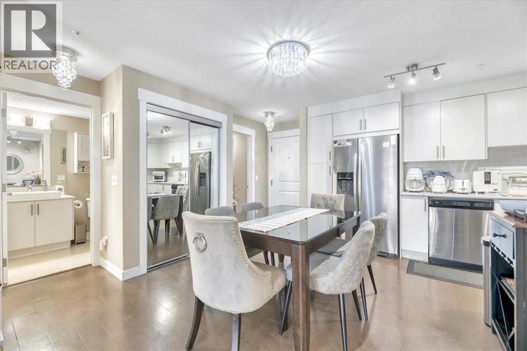 Step inside this beautiful, move-in-ready apartment at Orchard Sky in Skyview. This incredible 2-bedroom, 2-bathroom unit has been meticulously cared for, and it shows! You'll be immediately impressed by the thoughtfully designed, open-concept layout that makes you feel right at home.The heart of the home is a sparkling, all-white kitchen with abundant counter and storage space. It connects to a bright dining area, perfect for hosting dinner parties. The living room is bathed in natural light, making it a comfortable spot to unwind. Extend your living space onto the private balcony, a great place to barbecue or simply sit and enjoy the breeze.Retreat to the spacious primary bedroom, which features a walk-through mirrored closet leading to a 4-piece ensuite bathroom. The second bedroom is also a great size and is located next to the main 4-piece bathroom. A huge laundry area offers plenty of extra space for storage.To top it all off, the unit includes an assigned storage space and a titled underground parking stall right in front of it.Whether you're starting your homeownership journey, looking to downsize, or adding to your investment portfolio, this property is a fantastic find. The location is second to none—just a short walk from Prairie Sky School and Apostles of Jesus Catholic School (K-9), parks, playgrounds, and a variety of shops and restaurants. Commuting is a breeze with quick access to the Calgary International Airport and major routes like Country Hills Boulevard, Stoney Trail, and Deerfoot Trail.Come see this precious gem for yourself! Call to schedule a viewing. (id:6289)