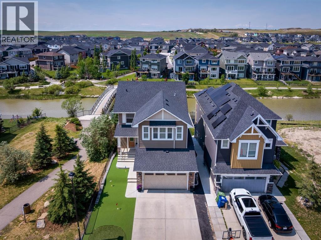 Welcome to a home that feels more like a year-round getaway than just a place to live.Backing directly onto a serene pond, this property offers maintenance-free outdoor living with some of the best views in the community. Imagine starting your mornings with ducks gliding across the water and peaceful walking paths right outside your door. Spend summer afternoons paddling the canal or unwinding in your private hot tub. In winter, the pond transforms into your own skating rink— beautifully lit for evening skates under the stars. This home is designed for both relaxation and play. A front-yard putting green adds a touch of fun, while the backyard is all about low-maintenance enjoyment. With only one neighbour and green space on the other side, you'll love the privacy and open feel. This FAMILY HOME includes 4 BEDROOMS + 3 Full Baths and UPGRADES GALORE! Loads of natural light throughout this home with the entire back wall of the house loaded with windows, 9' ceilings on the main & walkout level. Designer colors, upgraded fixtures, window treatments, central air conditioning & more! Convenient home office on the main level (or 4th bedroom) to ensure you have a bigger/brighter working space. Gorgeous Kitchen with custom RICH cabinets, stainless appliances, granite counters, upgraded light fixtures & high-end millwork. A large Island, ample cupboard & counter space and large dining area sets this home apart from the rest! Beautiful fireplace is the focal point of your living room and an OPEN PLAN perfect for entertaining. The West facing balcony lends plenty of room for a full patio set & a gas line to your BBQ! Walkout stamped concrete patio, HOT TUB with built in shutter system for added privacy, maintenance free yard with another great lower deck space & fire pit area (or fits an outdoor pool nicely)! PADDLE away down the canal and enjoy the open treed space/gorgeous bridge on the one side of your paradise! Central vac system, water softener, tankless hot water, bran d new paint & carpet, this home is LOADED UP! Upper level includes a HUGE BRIGHT BONUS ROOM, Retreat to your PRIMARY BEDROOM at the back of the house to CAPTURE THE BREATHTAKING VIEWS, SPA-LIKE full en suite and walk-in closet. UPPER LEVEL LAUNDRY, two more generous bedrooms & another full bathroom complete the upper nicely. Walkout level is host to again 9’ ceilings, with a HOME GYM/REC SPACE & awaiting your creative touches to finish off this beautiful home. Over-sized Double Attached HEATED GARAGE & professional landscaping just add to this incredible pkg. Whether you're entertaining friends, enjoying quiet evenings by the water, or making the most of four-season outdoor living, this property is truly one-of-a-kind. Don't just buy a house-embrace a lifestyle. Walking distance to parks, paths, amenities, schools & easy access out of town for the commuter. Book your private showing today! (id:6289)