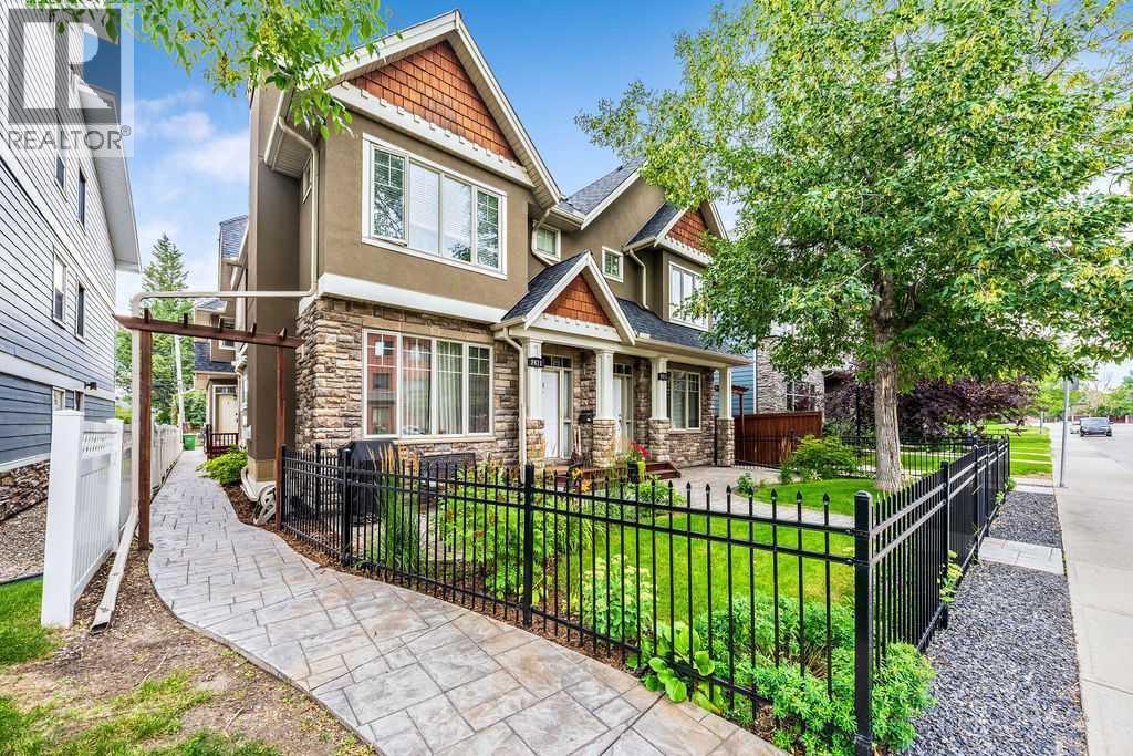 Spectacular West Hillhurst Townhome | 2,330 SqFt of Developed Living Space Designed by award-winning architect John Hadden, this exceptional residence combines timeless design with modern luxury in one of Calgary’s most desirable inner-city communities. Tucked away in a quiet location, the home showcases thoughtful craftsmanship and refined details from the moment you step inside. The bright and spacious layout showcases exotic tigerwood walnut floors, double crown moulding, recessed pot lighting, and 9’ flat ceilings on every level. The gourmet kitchen is a chef’s dream, featuring granite countertops, ash shaker-style cabinetry, and high-end Frigidaire Gallery stainless steel appliances, including a gas stove and a drawer microwave + corner pantry. The inviting living room centers around a beautiful gas fireplace with a deep mantle and custom-built-ins, and flows seamlessly onto a large south-facing deck with a gas BBQ hookup, perfect for entertaining. The main floor is complete with a half bathroom and laundry room. Upstairs, the oversized primary retreat features a vaulted ceiling, wainscoting, dual closets, and a spa-inspired 5-piece ensuite with a soaker tub and separate shower. A generous second primary bedroom with a walk-in closet and its own 4-piece ensuite completes the upper level. The professionally finished basement, designed by City Core/William Blake Homes, is an entertainer’s haven with 9’ ceilings, a custom media/family room, stunning built-in cabinetry, a linear gas fireplace with remote heat control, full surround sound wiring, oversized windows for natural light and space for an office desk or gym at the back. A third large bedroom with a 3-piece spa-like ensuite offers flexibility for guests or a private home office. Additional upgrades include: - New central A/C (2024 -$7,400 investment) - High-efficiency furnace - Wired for sound throughout - Custom closet organizers in all 3 bedrooms - Professional media setup with dedicated electrical circui ts and conduit for flexible wiring. Outside you have your own private deck with Southern exposures and access to your single detached garage. There's also a shared parking pad. This home is the perfect blend of quality, comfort, and sophistication in a prime location. A must-see for those seeking an upscale inner-city lifestyle. (id:6289)