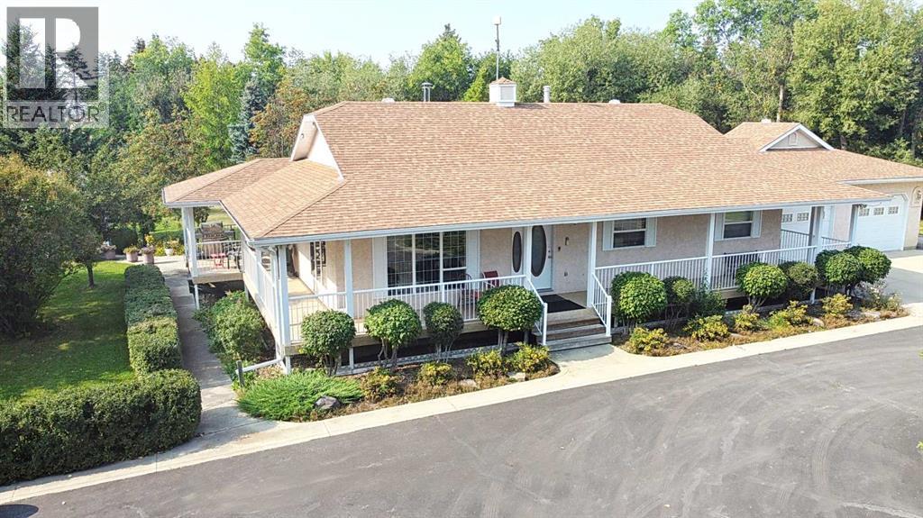 An Acreage Masterpiece – Minutes from Sylvan Lake. First Impressions: from the moment you arrive, this property sets the stage for something extraordinary. A circular paved driveway opens to manicured lawns, mature trees, and a parklike setting that instantly feels like home. This is not just a property—it’s a statement of space, privacy, and lifestyle. Inside the Home you will find a thoughtful floor plan designed to embrace natural light and connection to the outdoors. Walls of windows flood the living spaces with sunshine while framing picturesque views of the grounds complete with gazebo, firepit and vibrant foliage. The kitchen boasts plenty of cabinets and working space - a chef's dream, and the windows over the sink welcome the outside in as every season brings on a whole new canvas of views to enjoy. Primary Suite is designed with a 4-piece ensuite and direct access to the deck—ideal for morning coffee or stargazing nights. The dining and living areas offer open, sun-filled rooms that flow seamlessly for both family living and entertaining. Crackling wood burning stove adds ambiance and warmth. Bedrooms & Bathrooms: 3 spacious bedrooms and 4 well-appointed bathrooms offer comfort and flexibility for family and guests. Main floor also has an office/den that could easily be used as a fourth bedroom. Main floor laundry. Downstairs you will find the family fun centre boasting a huge family/recreation room to furnish to fit your families needs. There is one more bedroom and a 3pc bath and large storage room to complete this level. Outdoor Living: The exterior is equally as impressive. Wrap-Around Deck: Expansive outdoor living with the choice of sun or shade all day long. Parklike Yard: Mature landscaping and wide-open skies create a private, tranquil escape. Beyond the Home: 30x80 heated shop with mezzanine and 2pc bathroom: Endless opportunities for hobbies, collections, or entrepreneurial ventures. Additional Shed with electricity: Added convenience for stor age and projects. The Lifestyle: This rare property offers the best of both worlds—peaceful country living just minutes from Sylvan Lake’s vibrant community, beaches, and amenities. A peaceful, private retreat that blends elegance, functionality, and unmatched charm. Updated items: furnace 2024, hot water tank 2024, hot water tank(2) 2023, septic field 2024 and air conditioning 2023. (id:6289)
