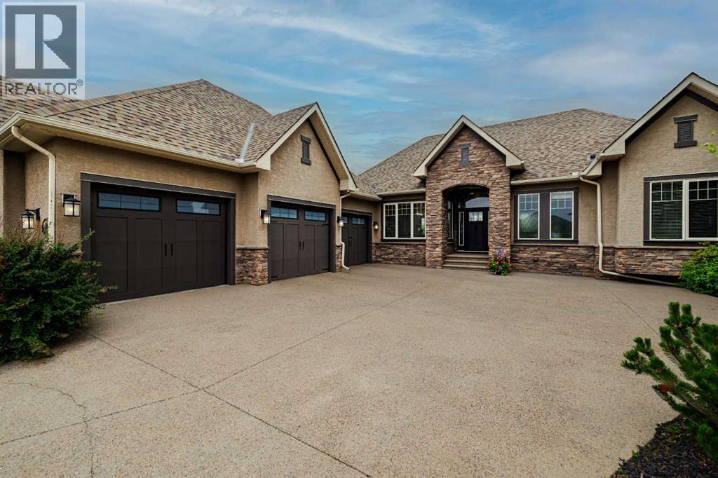 ***Open House Saturday October 4th, 12-4pm*** Set on a quiet cul-de-sac in Monterra, this custom executive bungalow offers nearly 3,800 sq. ft. of developed living space on a 0.41-acre pie-shaped lot with pathways and pond views. Blending timeless craftsmanship with extensive recent upgrades, this home is move-in ready and designed for both comfort and entertaining.The sun-filled great room features high ceilings, expansive windows, and a stone fireplace with custom built-ins. The gourmet kitchen showcases granite counters, stainless steel appliances (including a new fridge, microwave, and dishwasher), a central island, enclosed walk-through pantry, built-in garbage compactor, in sink garburator and refreshed lighting. An elegant dining area and a bright breakfast nook make entertaining seamless.The primary suite offers a spa-inspired ensuite with a retiled shower floor, including a time-set steamer, jetted tub, dual vanities, heated towel bars, and dual walk-in closets. A dedicated main-floor office or second bedroom, 3 piece bathroom, and practical mudroom round out this level.Downstairs, the fully developed walkout offers a massive rec room, a custom wet bar, and a spacious three-season sunroom for year-round enjoyment. There are two additional bedrooms, a full bathroom, a laundry room, and a versatile flex room or office that provides ample space for family and guests.The landscaped backyard features mature trees, stone accents, and a fire pit area, with direct access to ponds and pathways for year-round recreation. The oversized triple garage is a standout, complete with hot and cold water, commercial stainless sink, 17 custom double door cabinets and abundant storage.In the past two years, this home has benefited from over $100k in updates including new flooring, carpeting, fresh interior and exterior paint, modern lighting, and upcoming exterior upgrades (roof, eavestroughs, and downspouts). These thoughtful improvements add to the pride of ownersh ip and peace of mind.Monterra on Cochrane Lake is a premier community where estate living meets natural beauty. Residents enjoy peaceful surroundings, scenic walking paths, and close proximity to both Cochrane and the Rocky Mountains.This is more than a home — it’s an unmatched, private executive retreat that is move-in ready! Book your showing today. (id:6289)